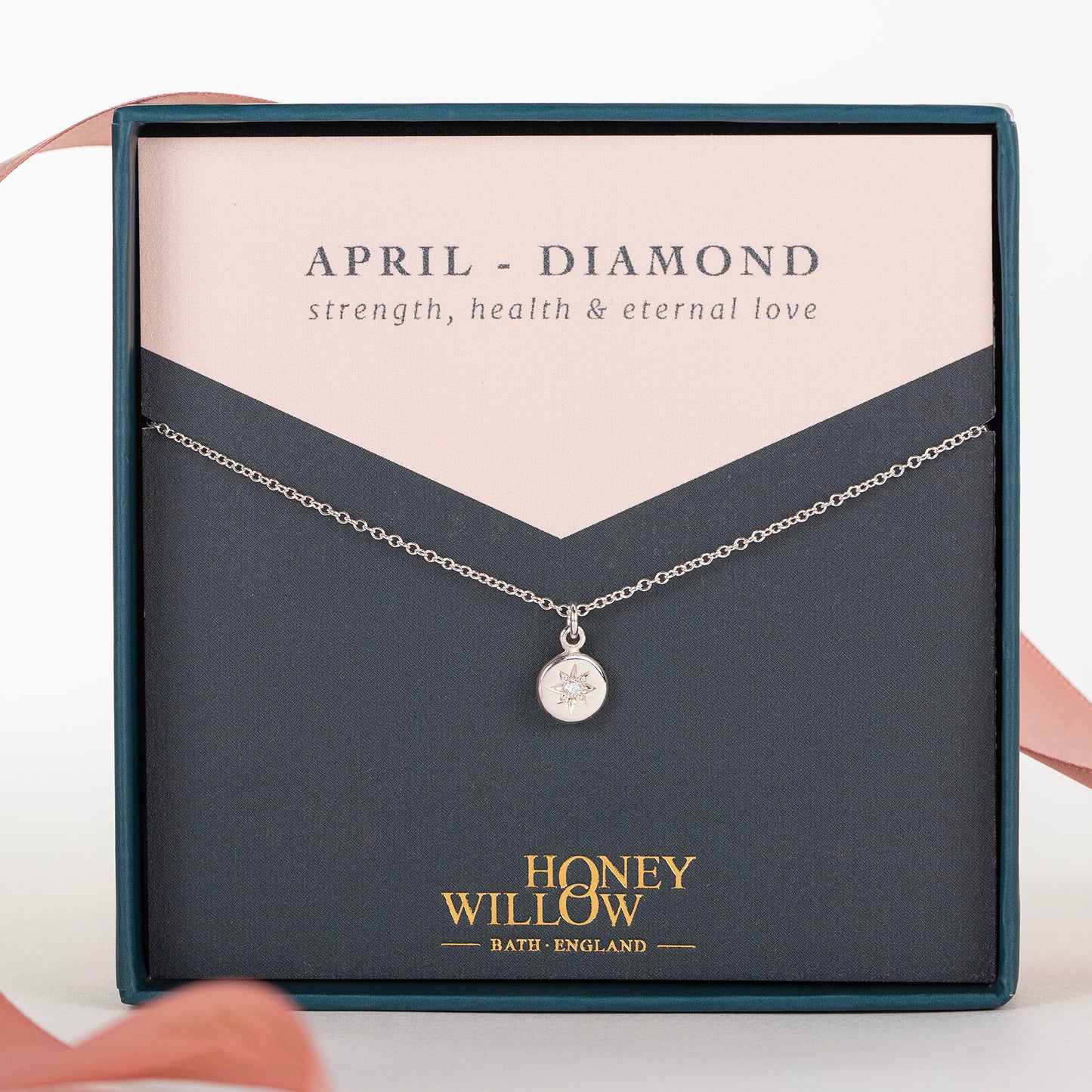 Celebrate her April birthday with a dainty sterling silver pendant, star set with her birthstone.