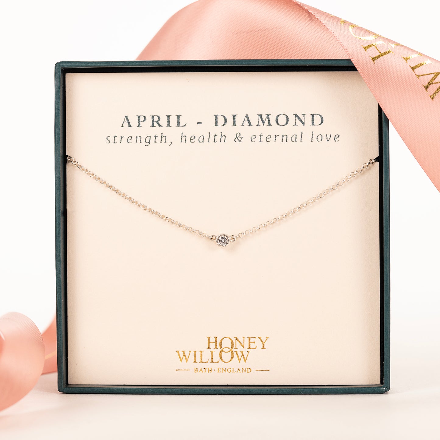 April Birthstone Necklace - Single Birthstone Necklace - Silver