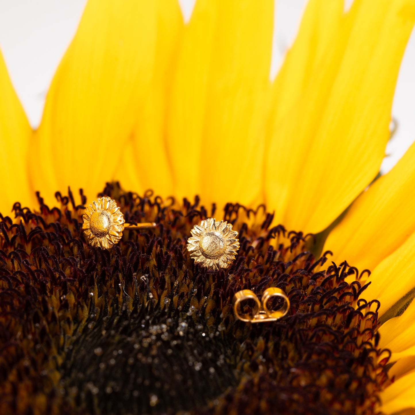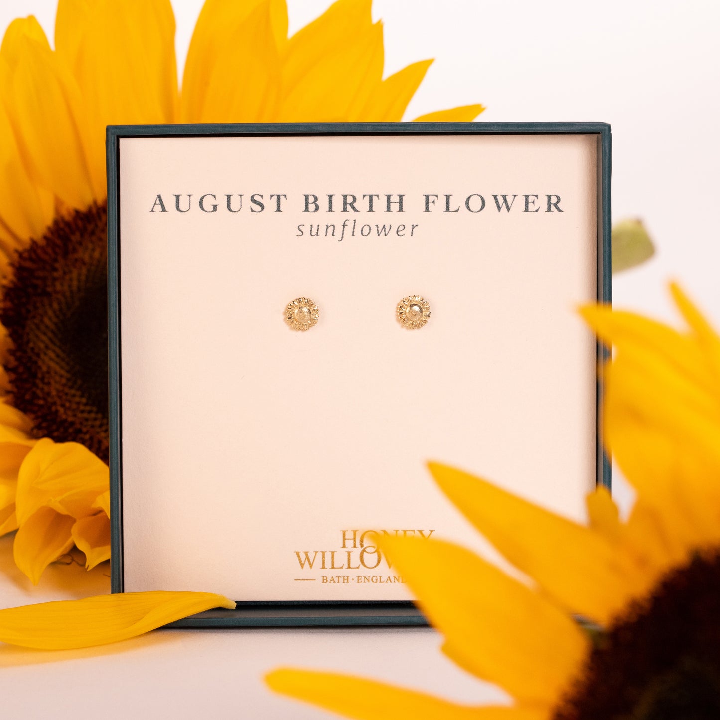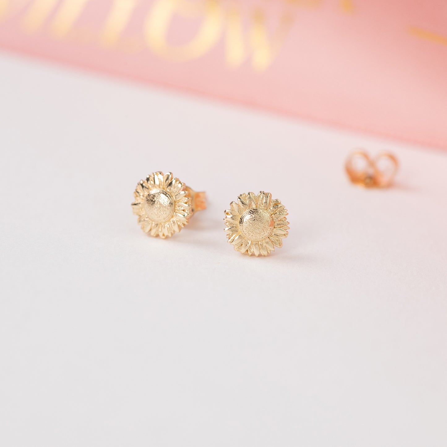 August Birth Flower Earrings - Sunflower Studs - 9kt Gold