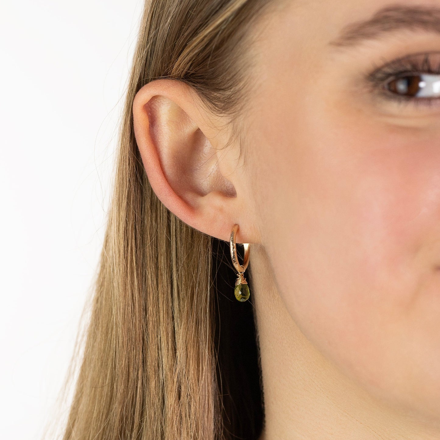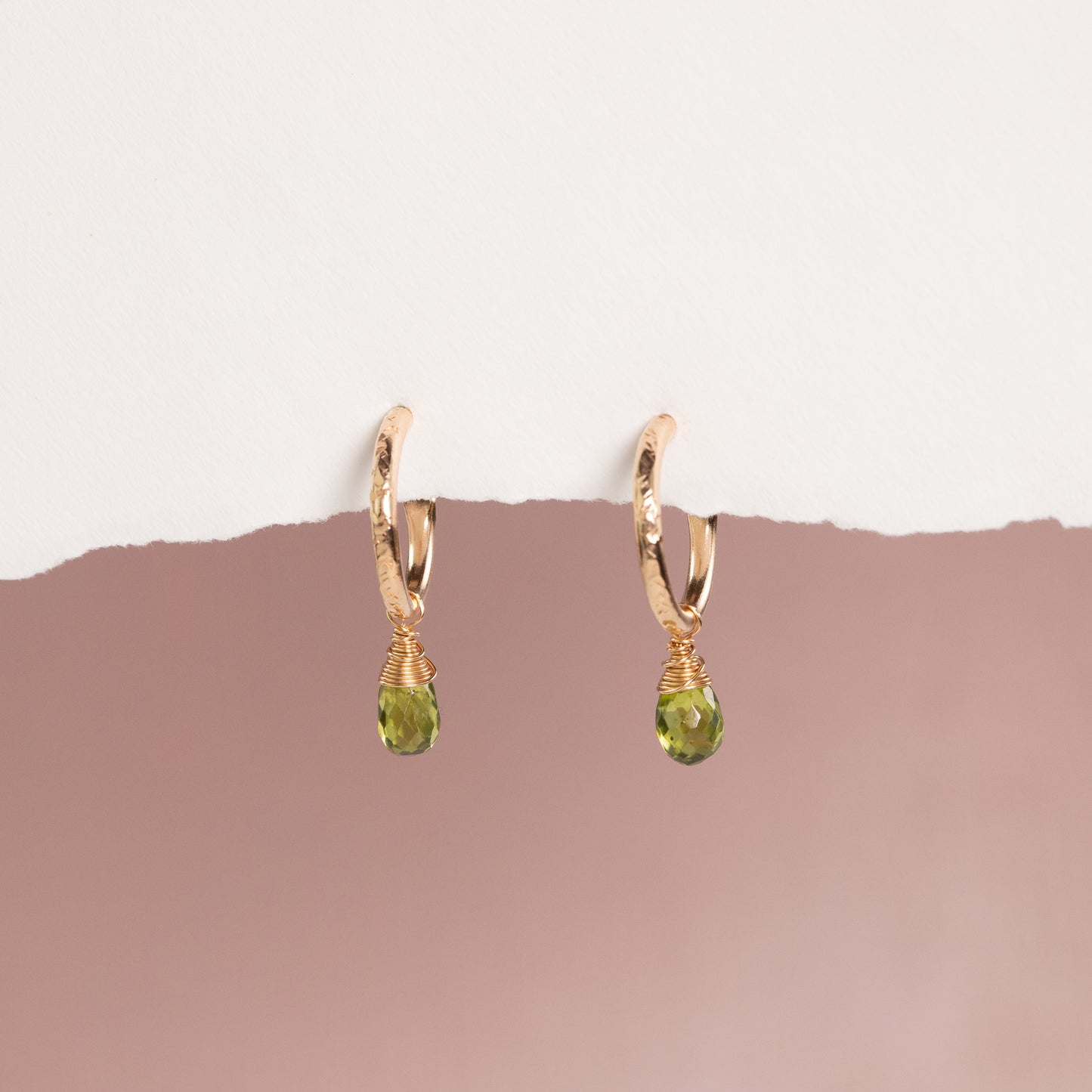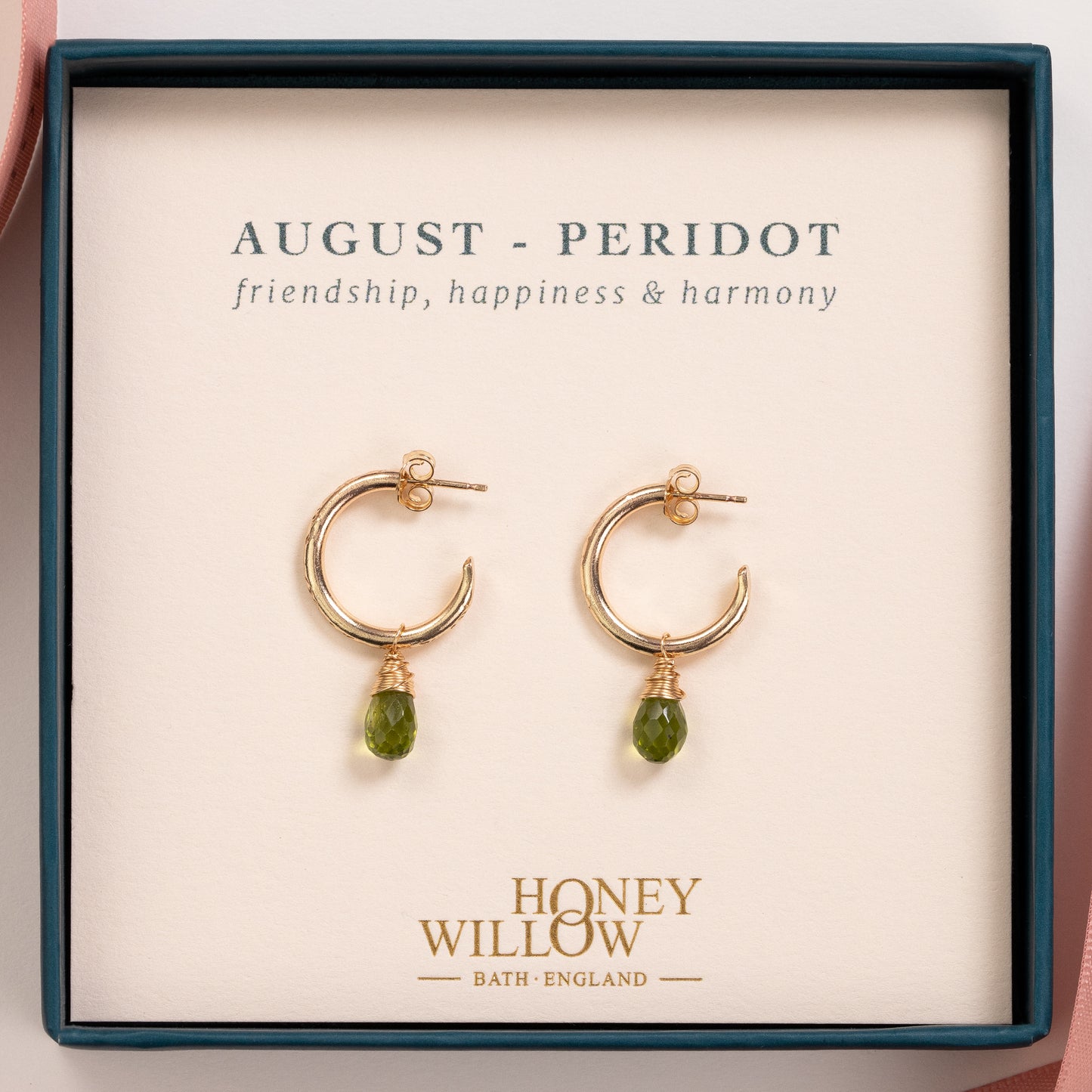 August Birthstone Earrings - Peridot Gold Hoops - 1.5cm
