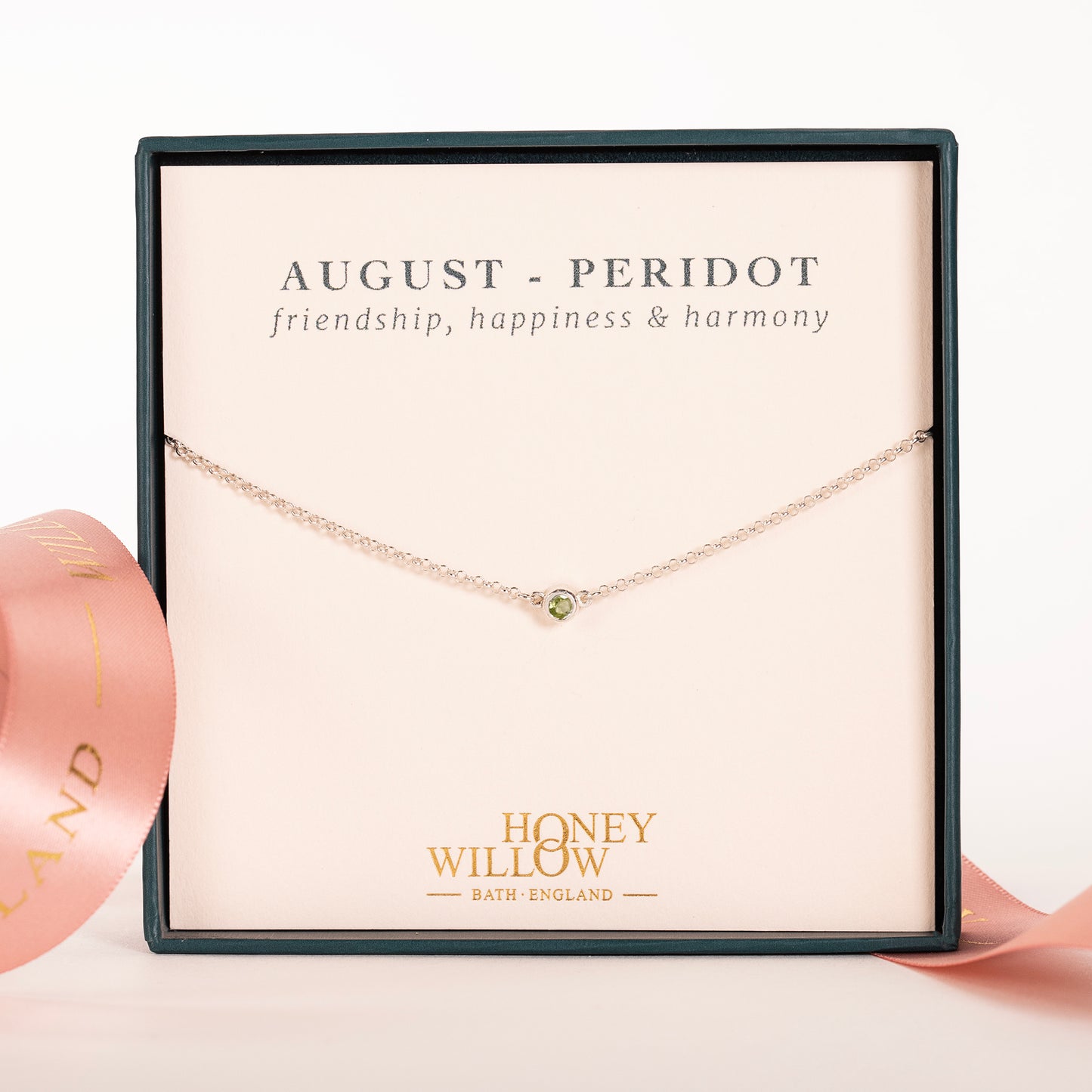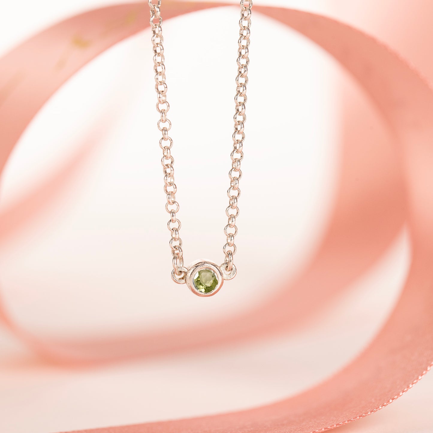 August Birthstone Necklace - Single Peridot Solitaire