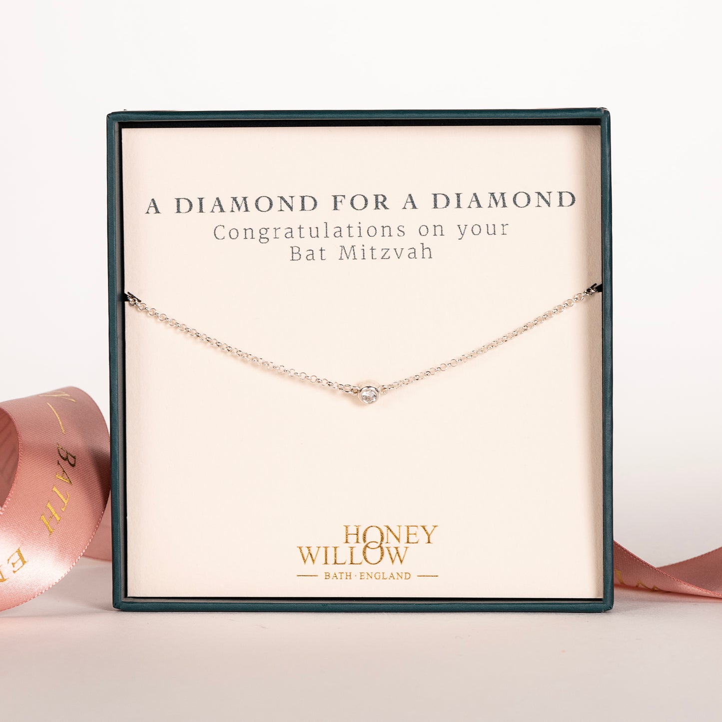 Gift for Bat Mitzvah- Single Diamond Necklace