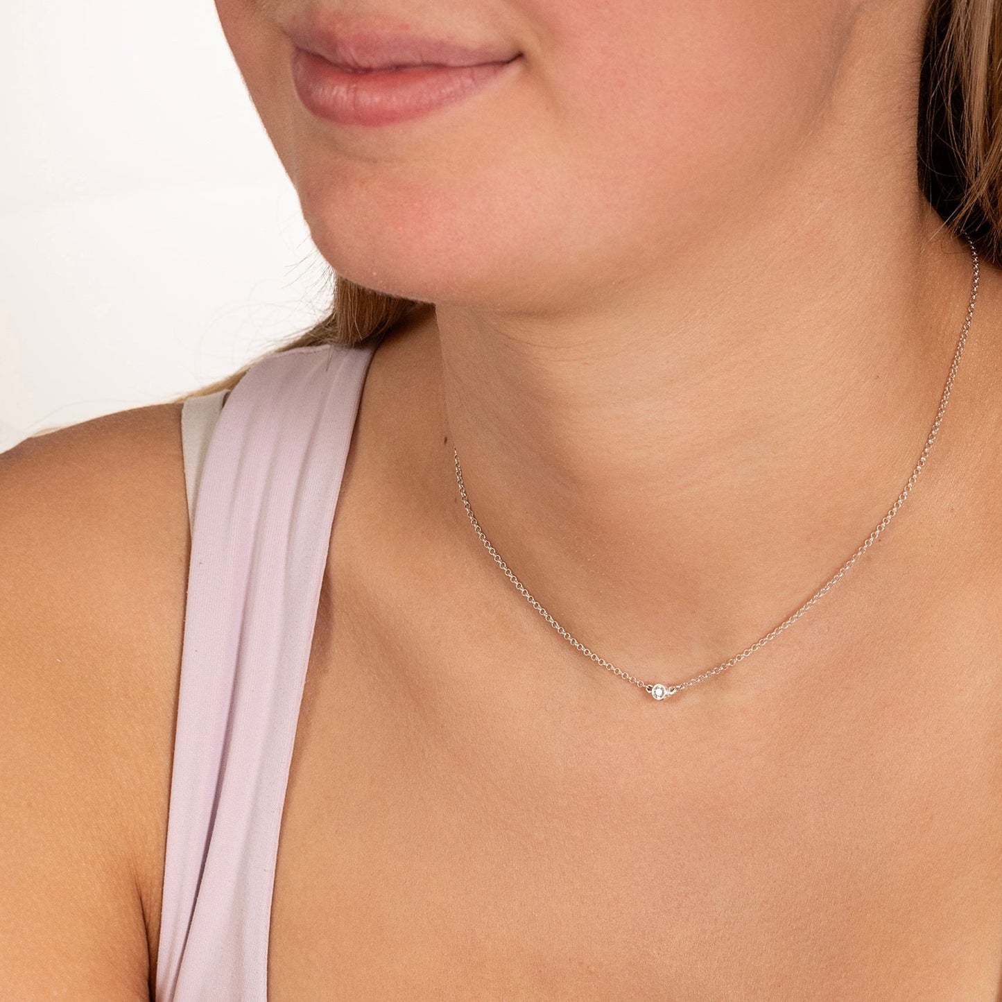 This dainty silver necklace is handmade with a single lab-grown diamond.