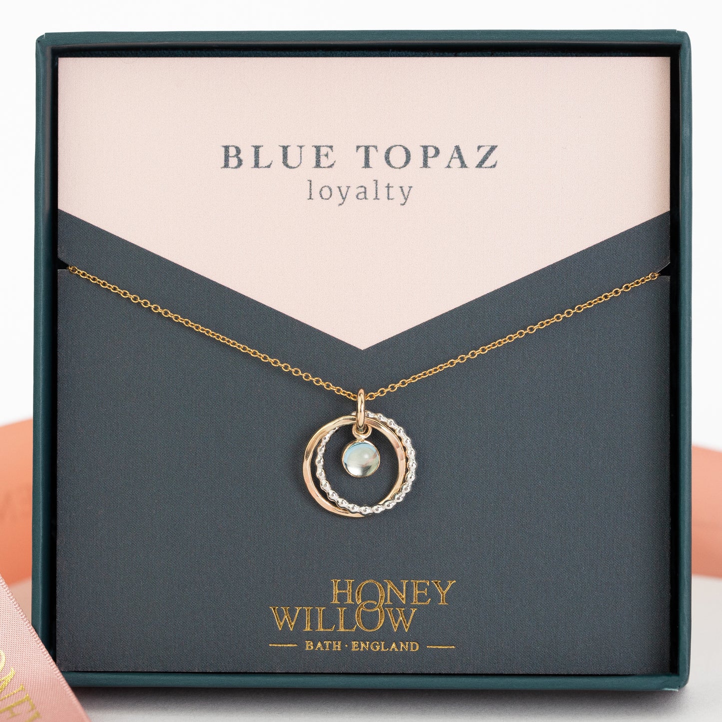 Blue Topaz Double Link Necklace - Loyalty - Silver & Gold
