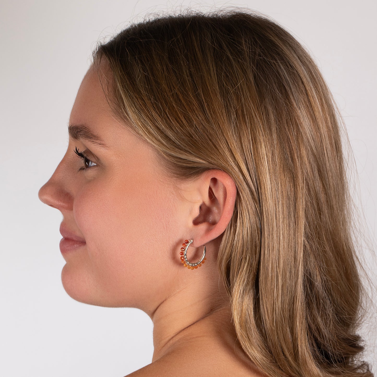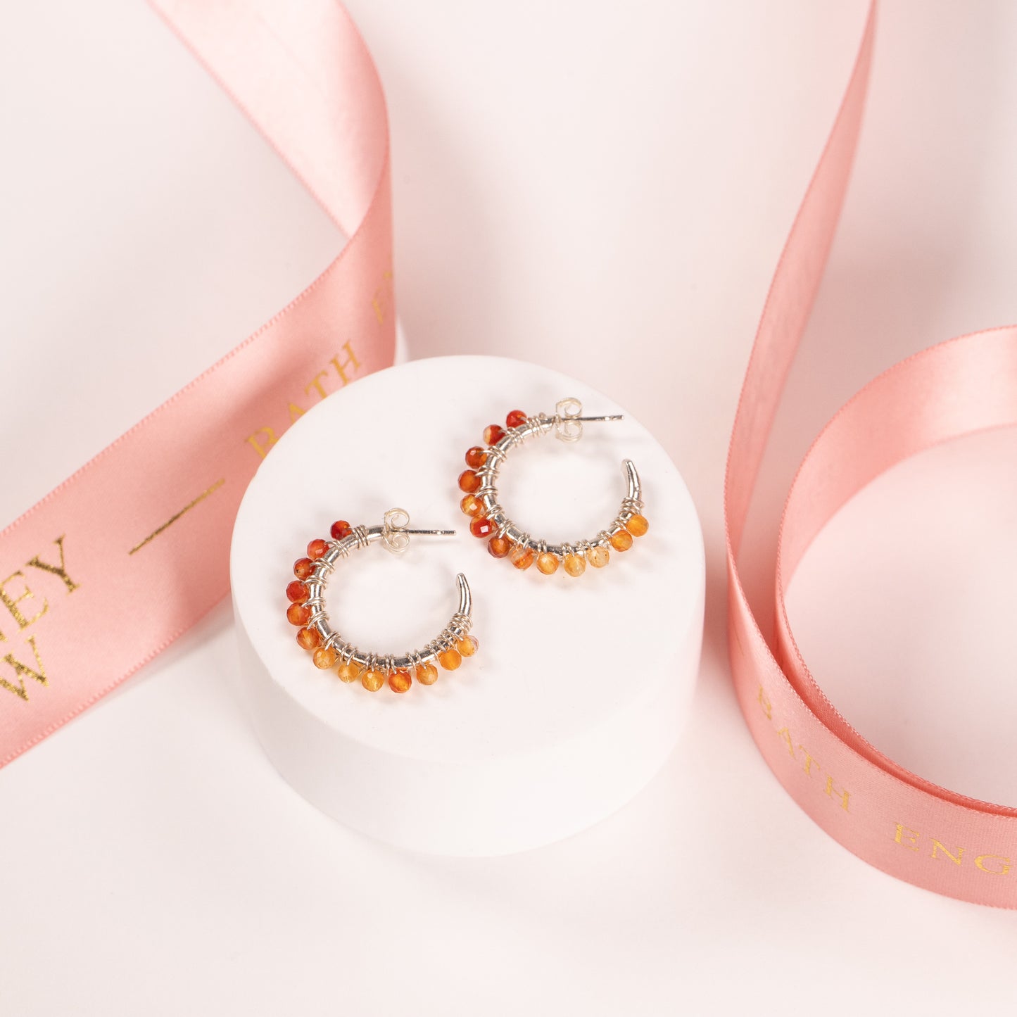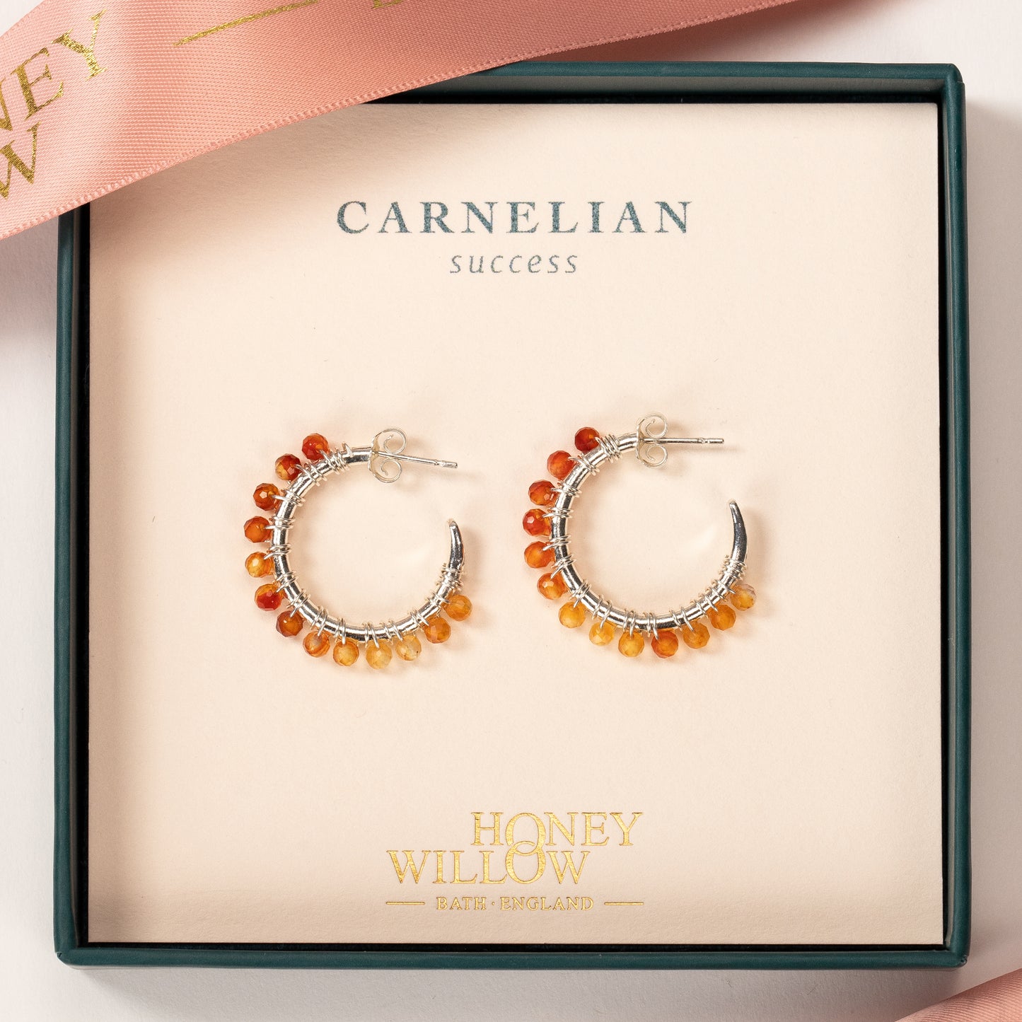 Carnelian Hoop Earrings - Success - 2cm - Silver & Gold