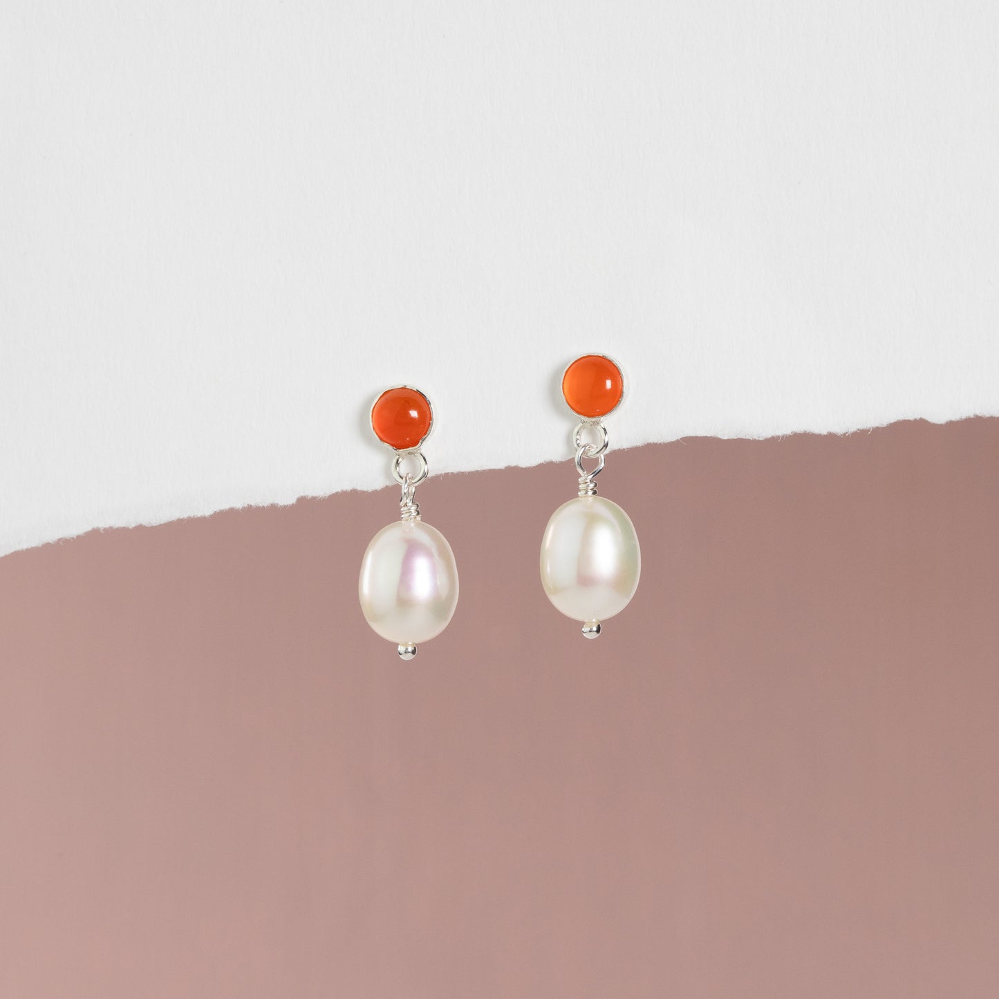 Carnelian & Pearl Earrings - Success - Silver & Gold
