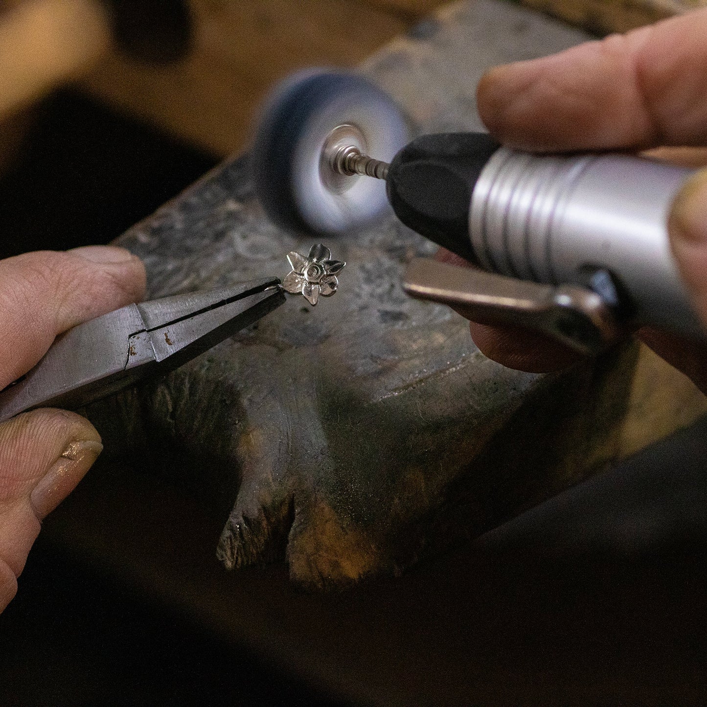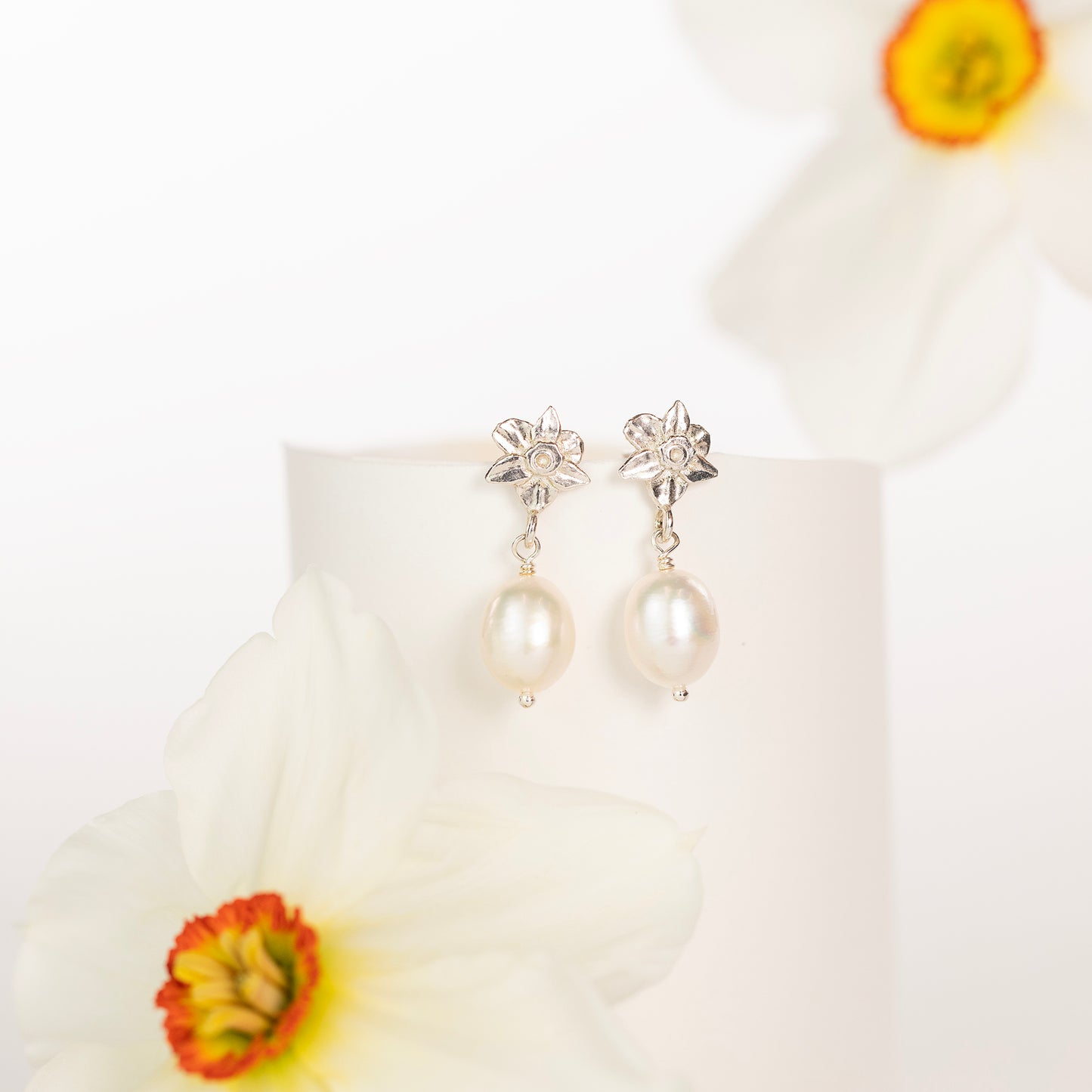 Daffodil Flower Earrings - Joy - Silver & Pearl