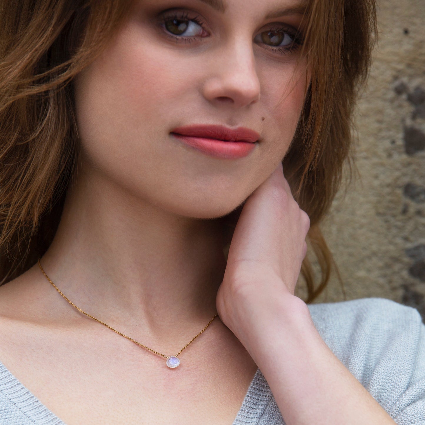 Celebrate her June birthday with a dainty necklace, handmade with moonstone, a birthstone for June.