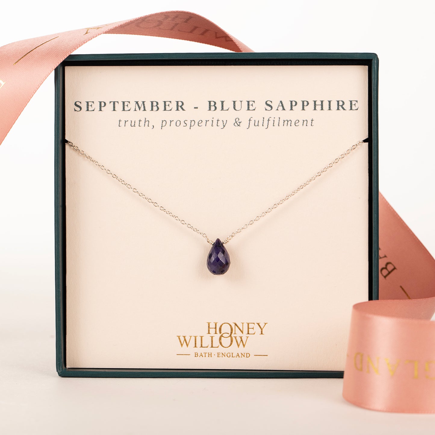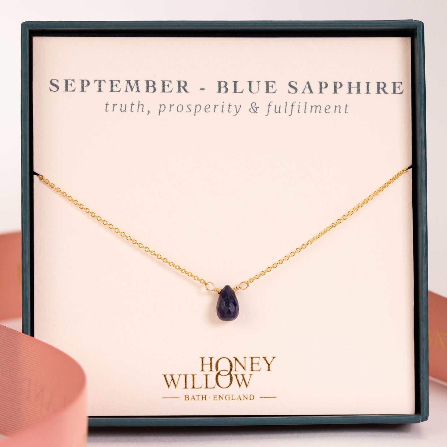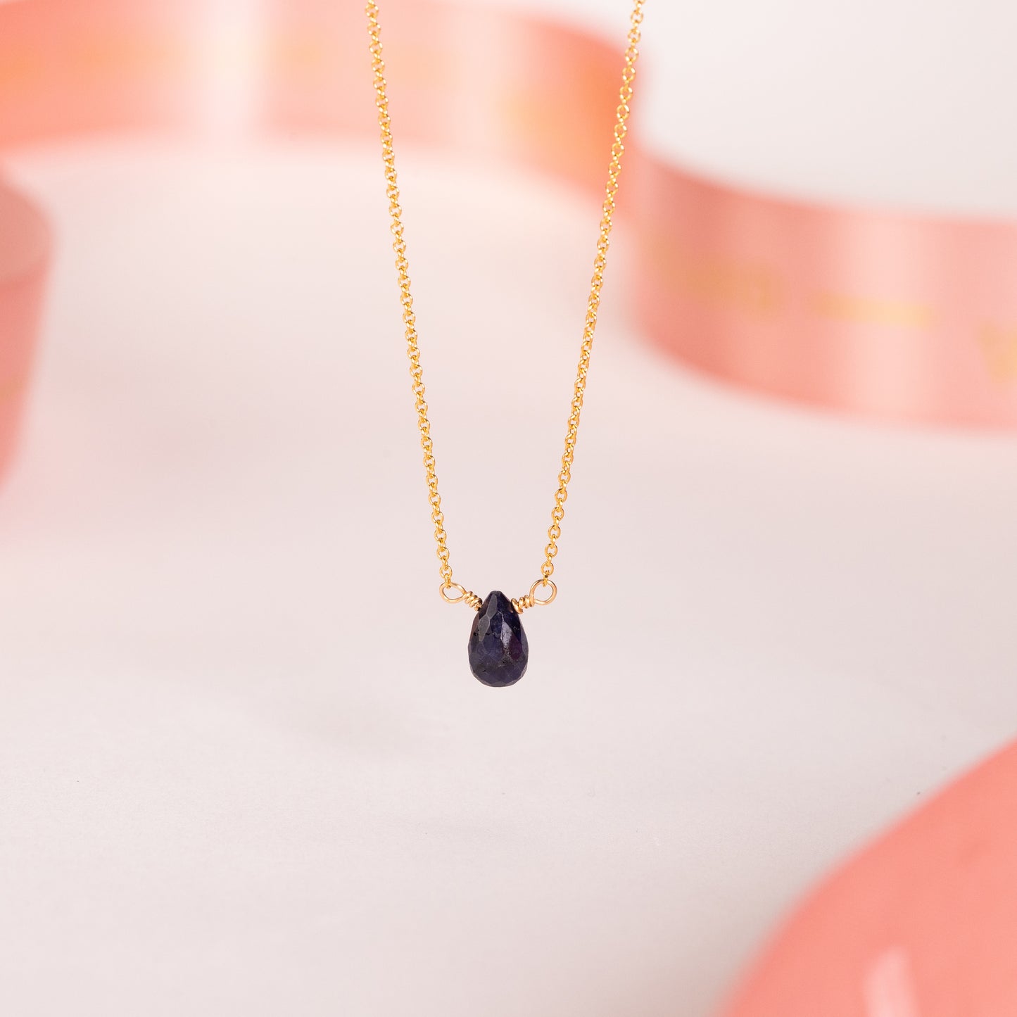 Celebrate her September birthday with a dainty necklace, handmade with blue sapphire, the birthstone for September.