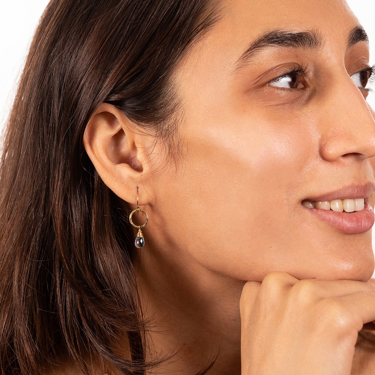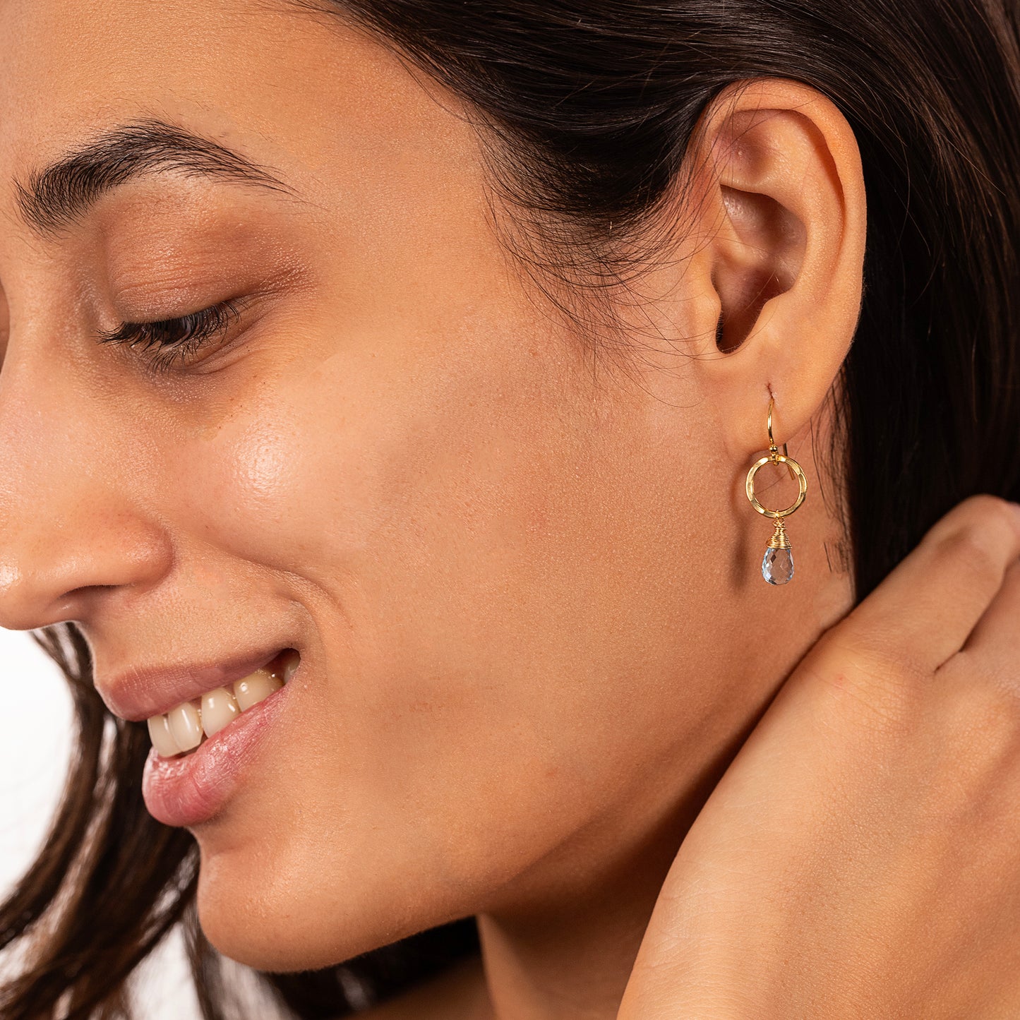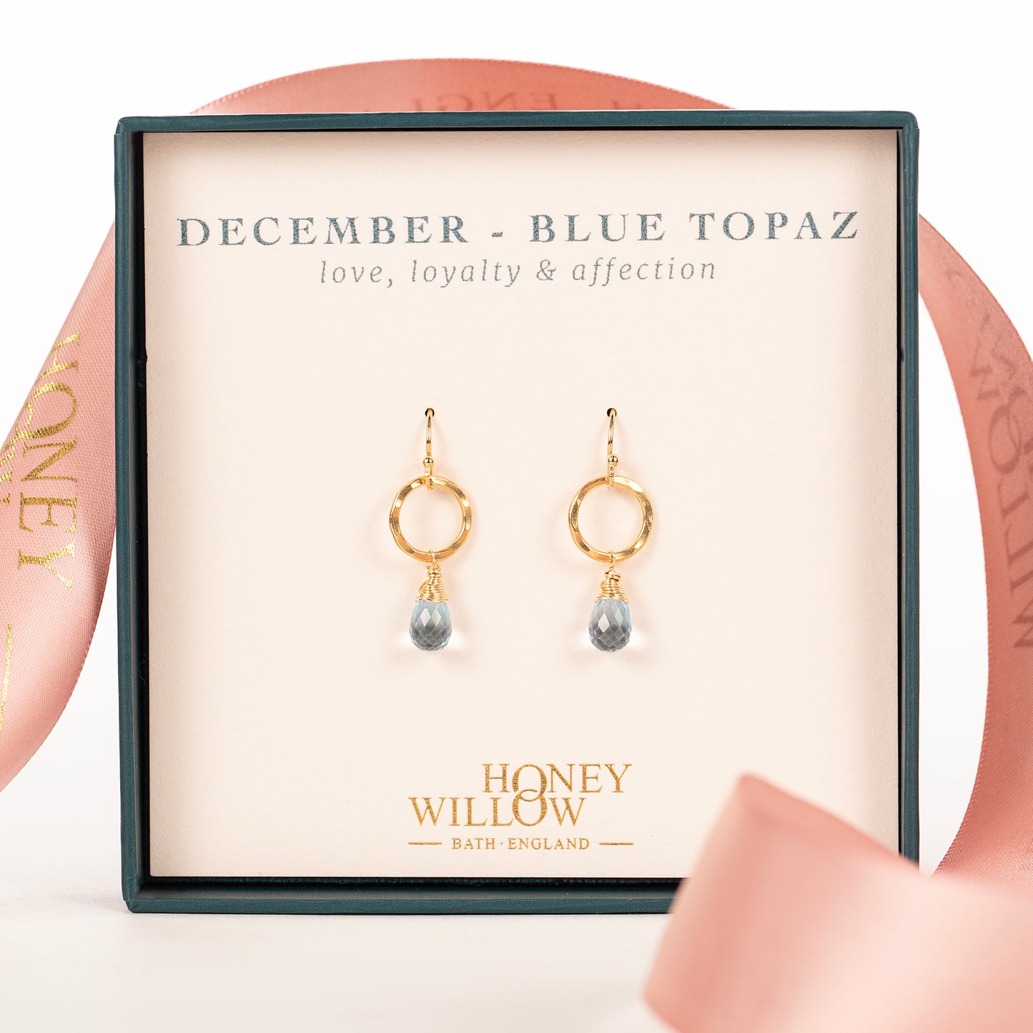 Celebrate her December birthday with dainty blue topaz circle earrings.