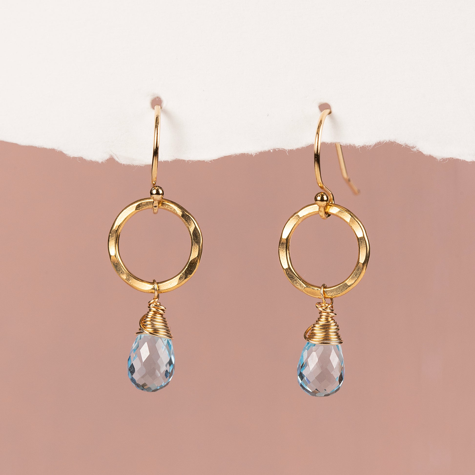 December Birthstone Circle Earrings - Blue Topaz - Silver & Gold