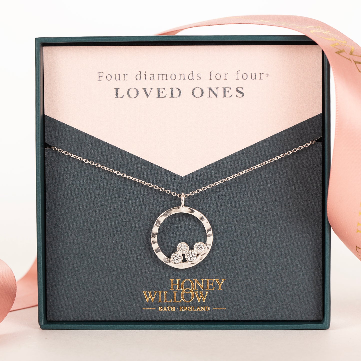 Give your loved one an original four diamonds for four® loved ones necklace, designed and handmade in Bath, England.