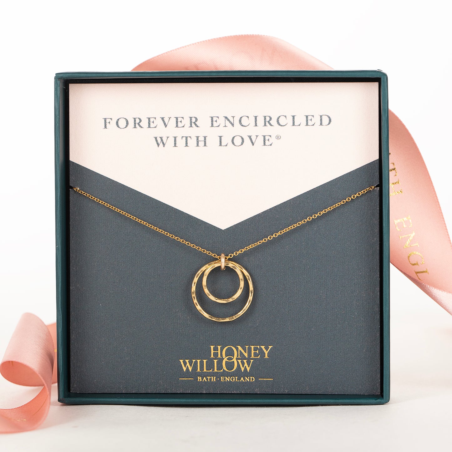 Double Circle Necklace - Forever Encircled with Love - Silver & Gold