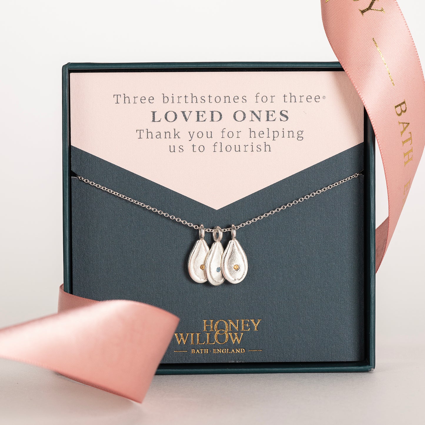 Celebrate her family with a family birthstone seed necklace, handmade for her with up to four seeds. Each seed is set with the birthstone of a loved one.
