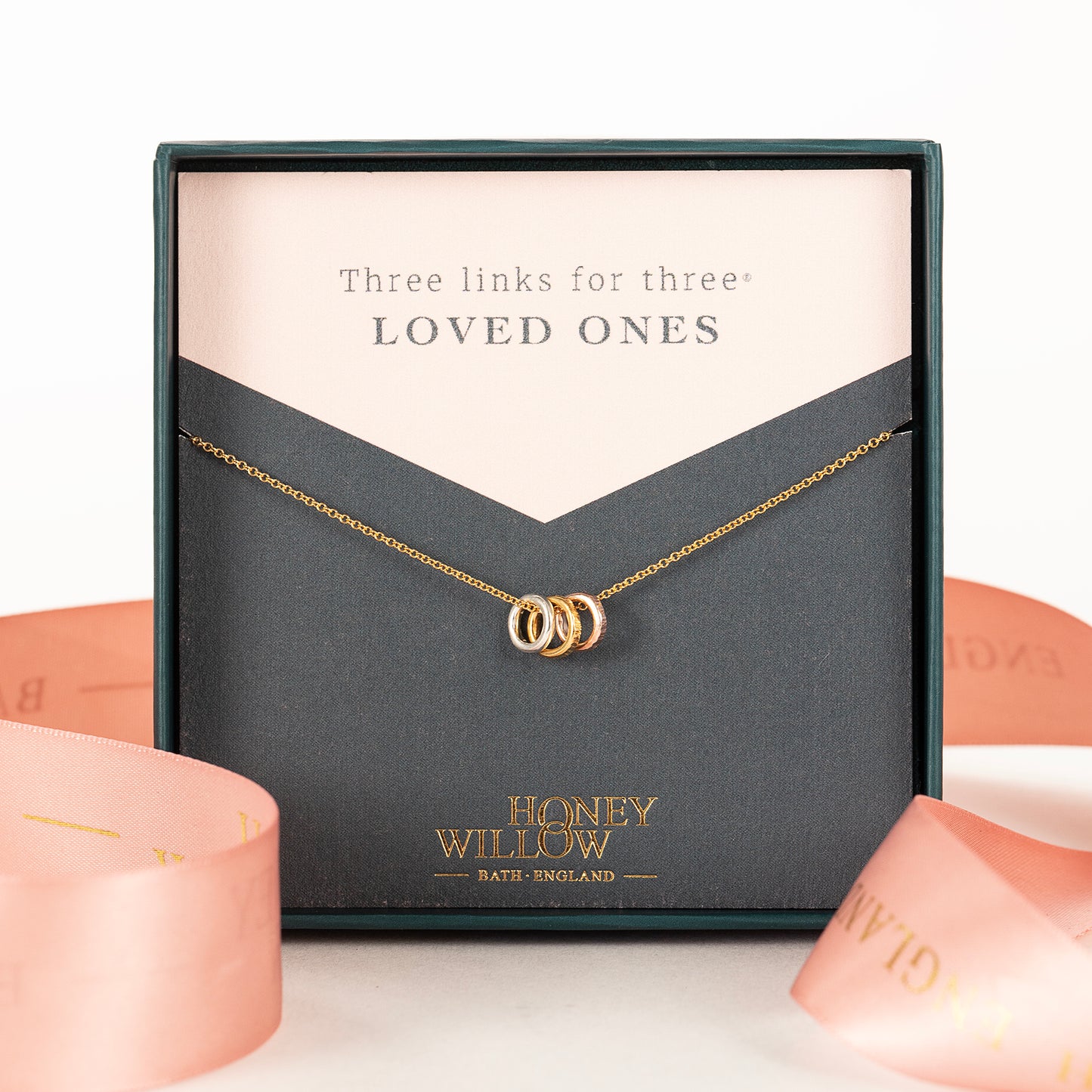 Celebrate her family with a Honey Willow tiny links necklace - three links for three® loved ones.