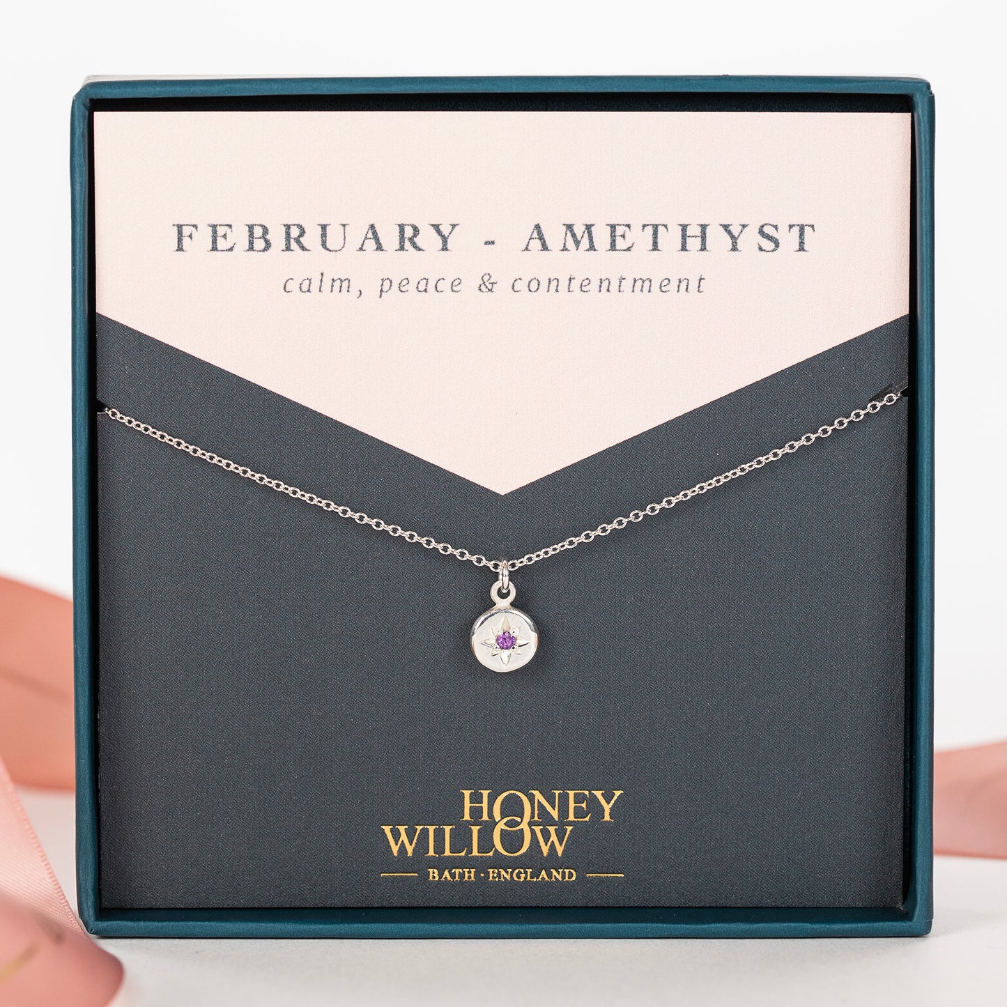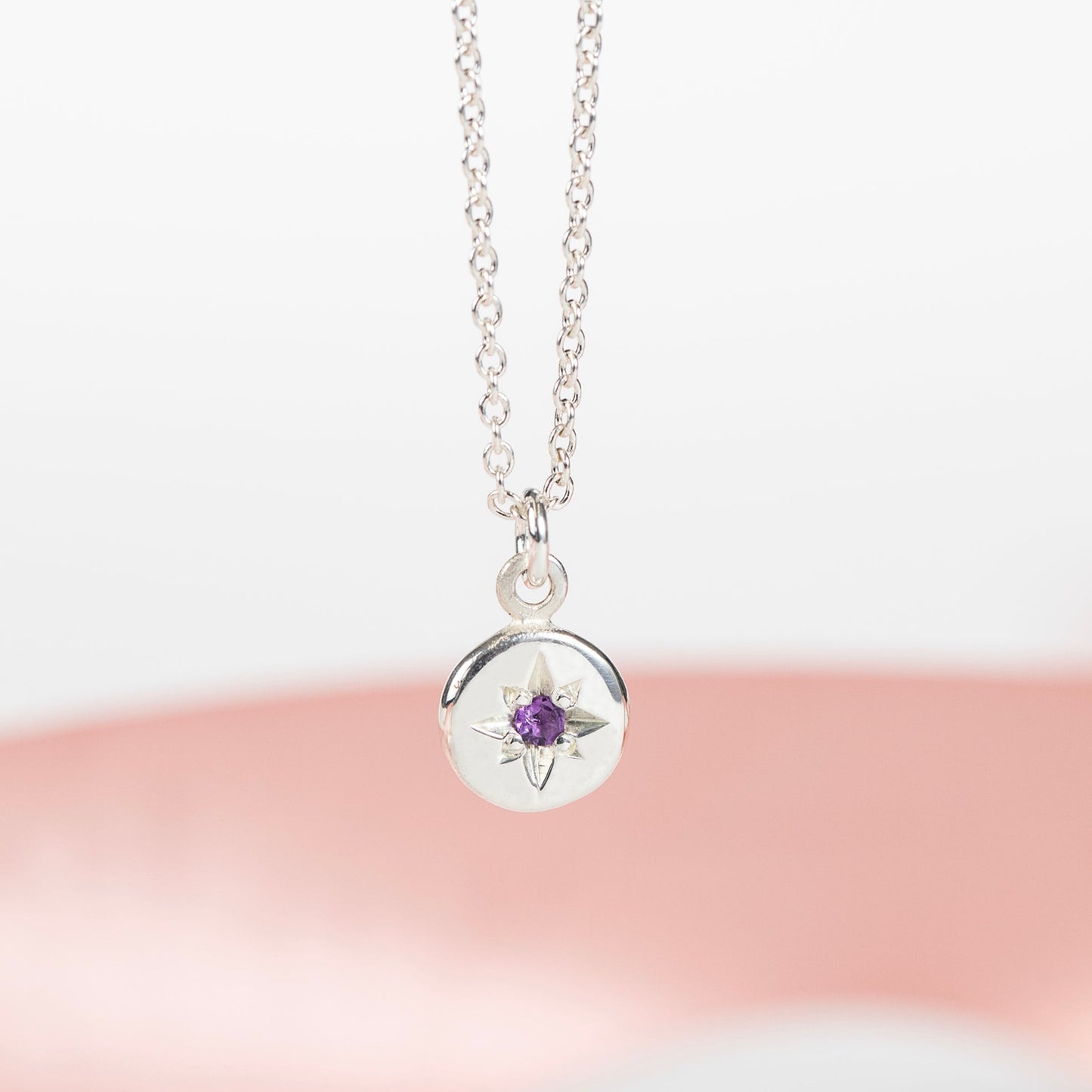 Celebrate her February birthday with a dainty sterling silver pendant, star-set with her birthstone.