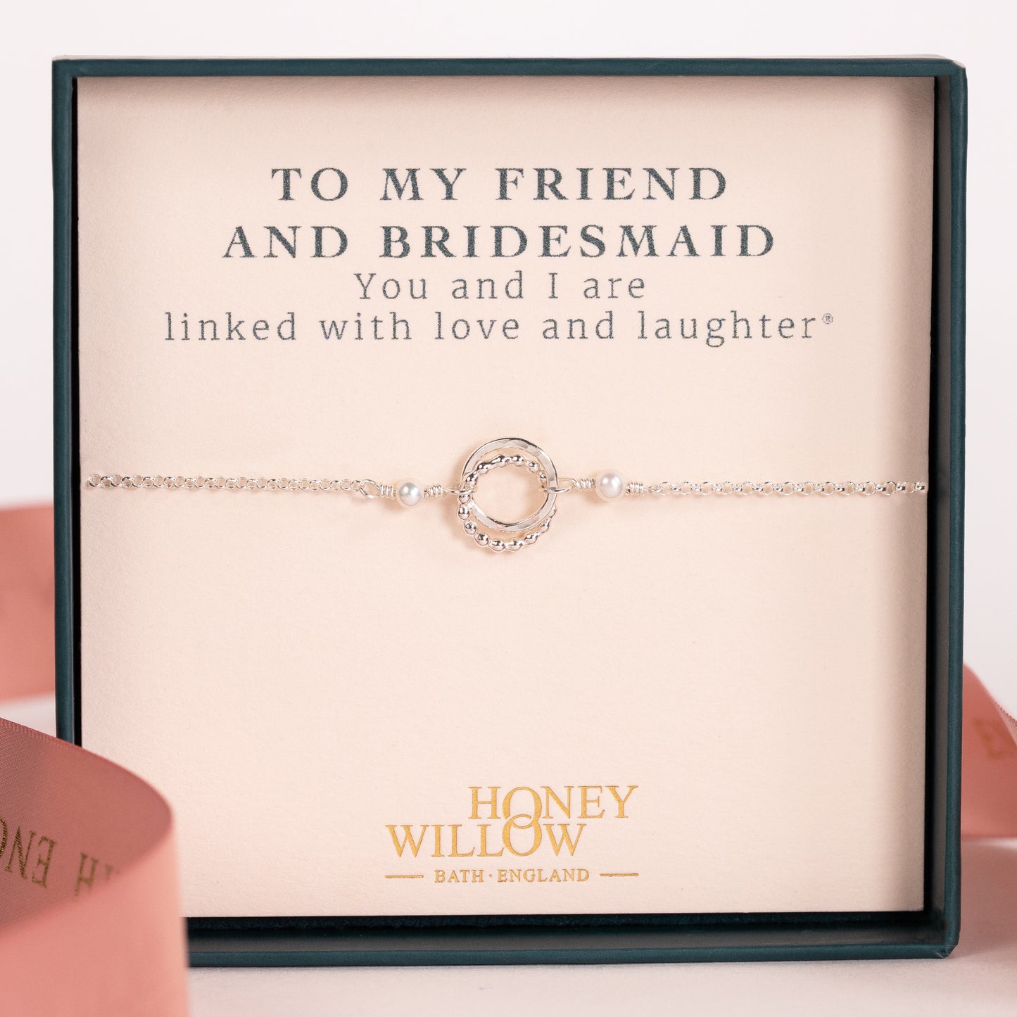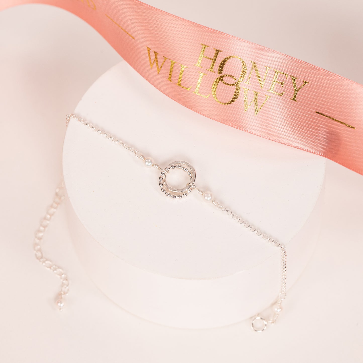 Gift for Friend & Bridesmaid - Pearl Love Knot Bracelet - Linked for a Lifetime - Silver