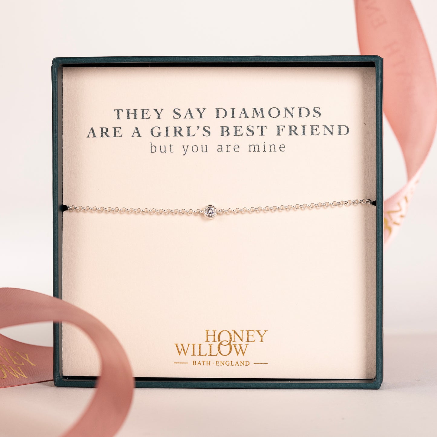 Celebrate her with a dainty silver bracelet, handmade with a single lab-grown diamond.