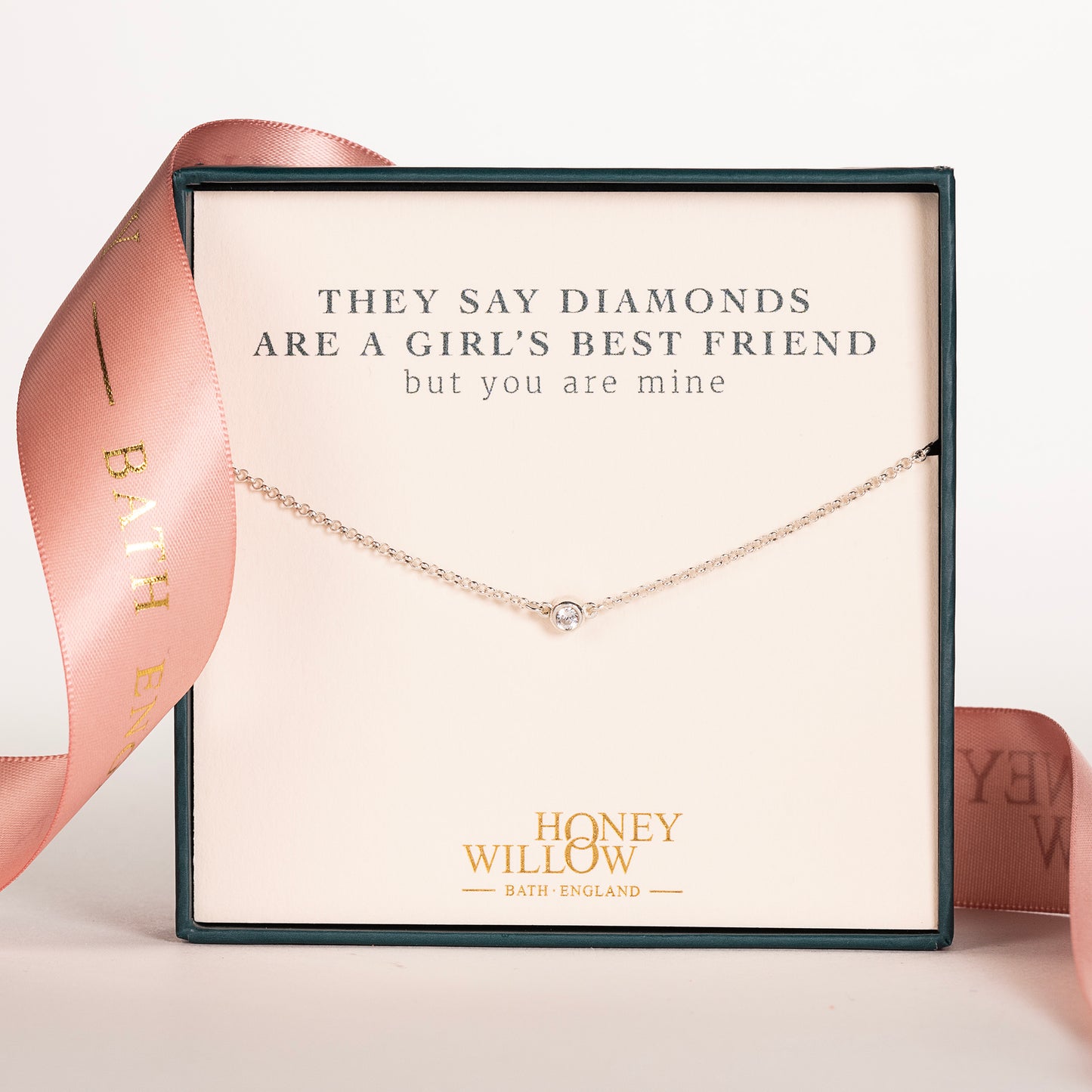 Gift for Friend - Single Diamond Necklace - Lab Grown Diamond - Silver