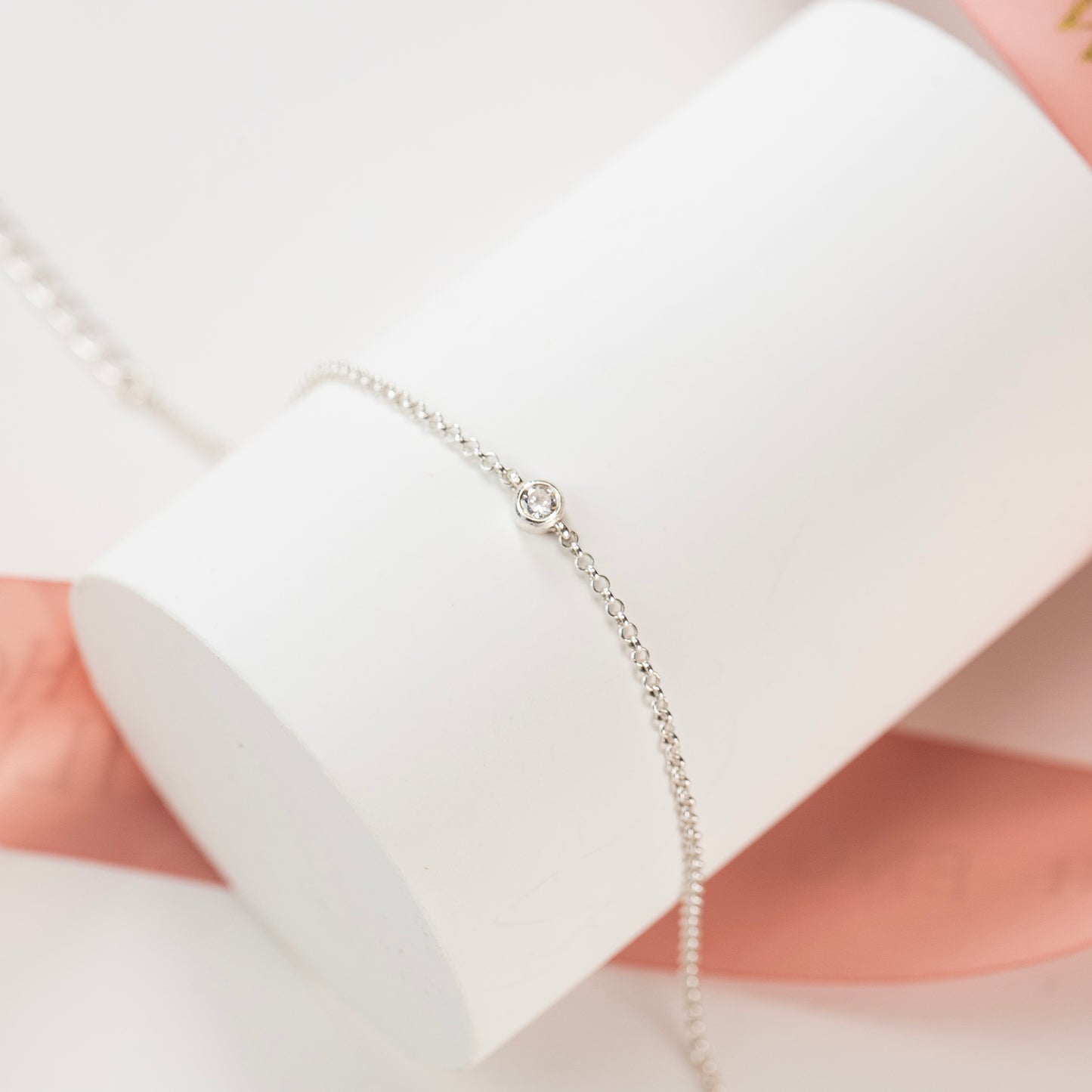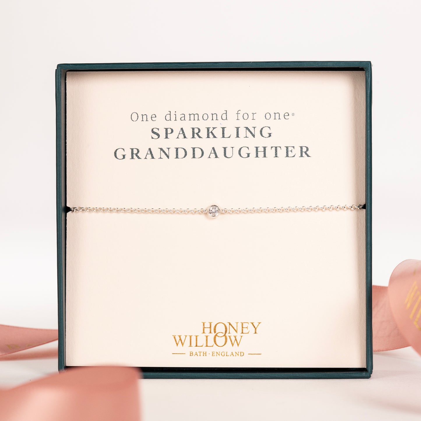 Give your granddaughter a dainty silver bracelet, handmade with a single lab-grown diamond.