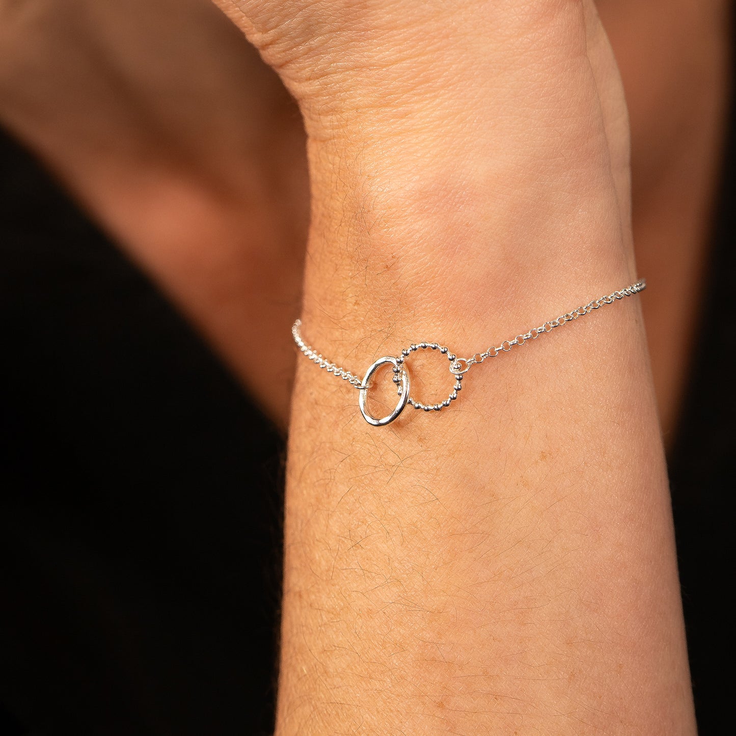 Celebrate the bond between you with a dainty silver double link bracelet.