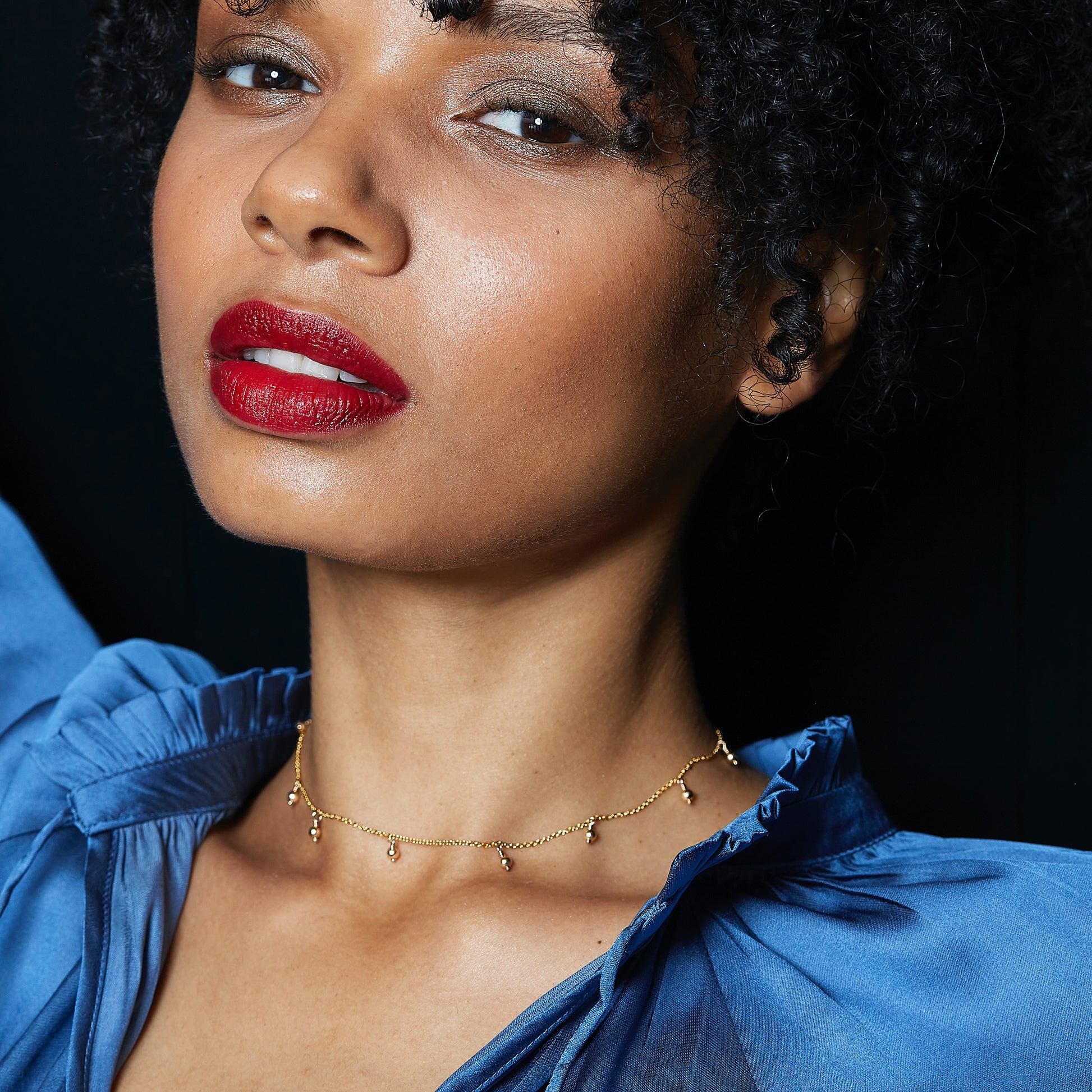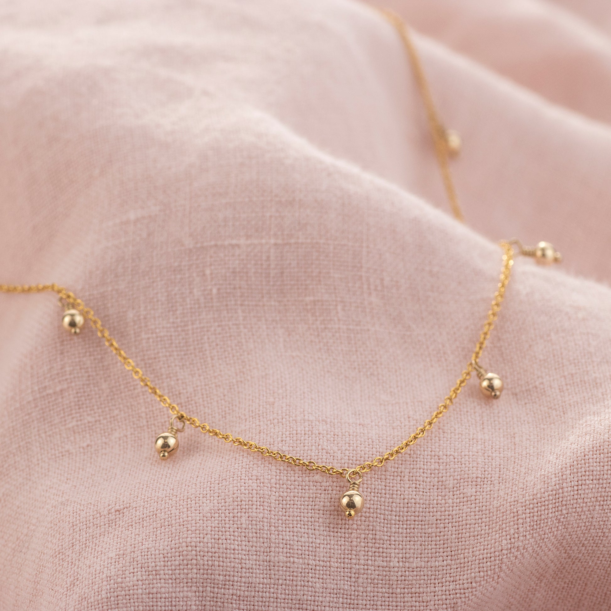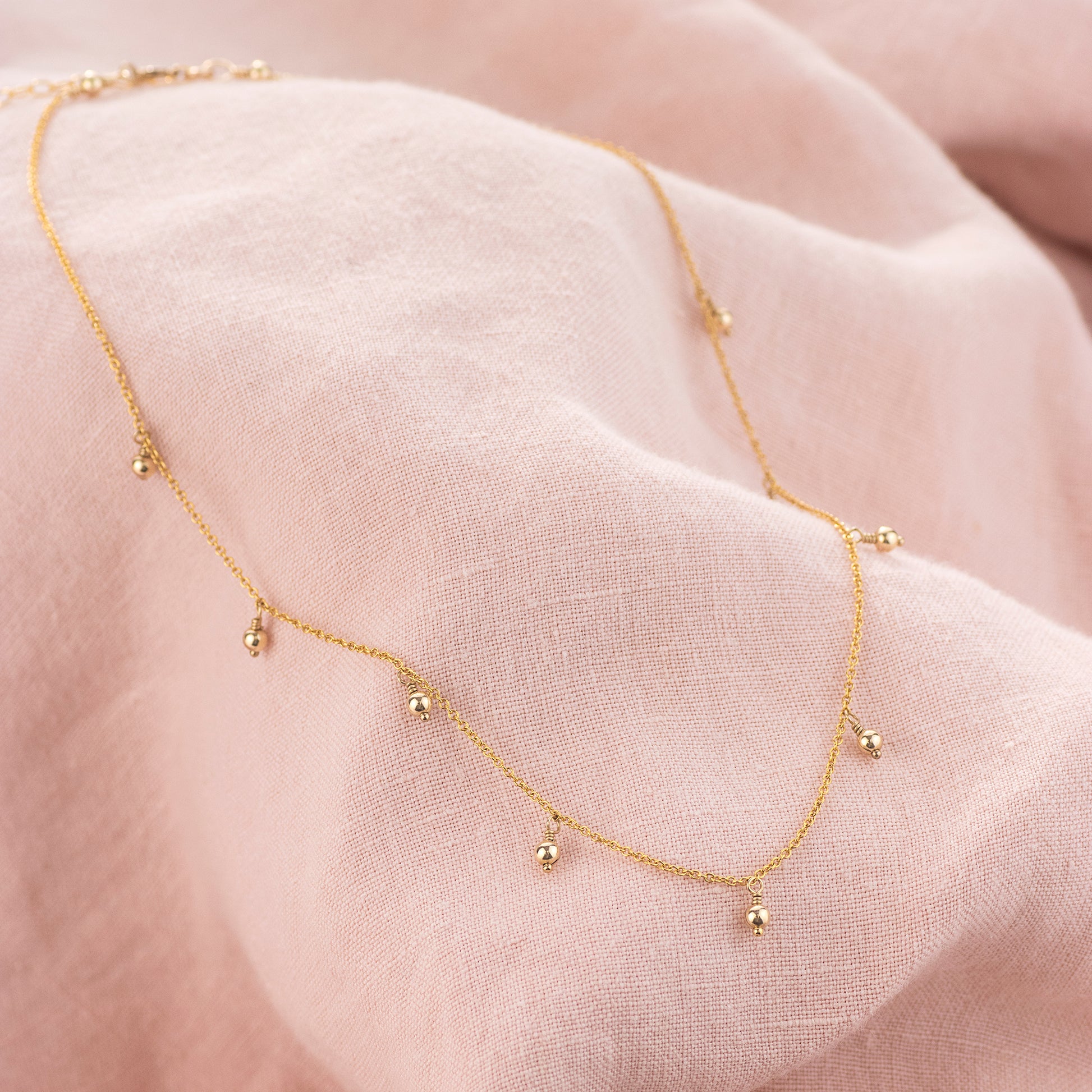 Perfect for layering on wearing just as it is, this delicate gold choker necklace is handmade with tiny gold balls.