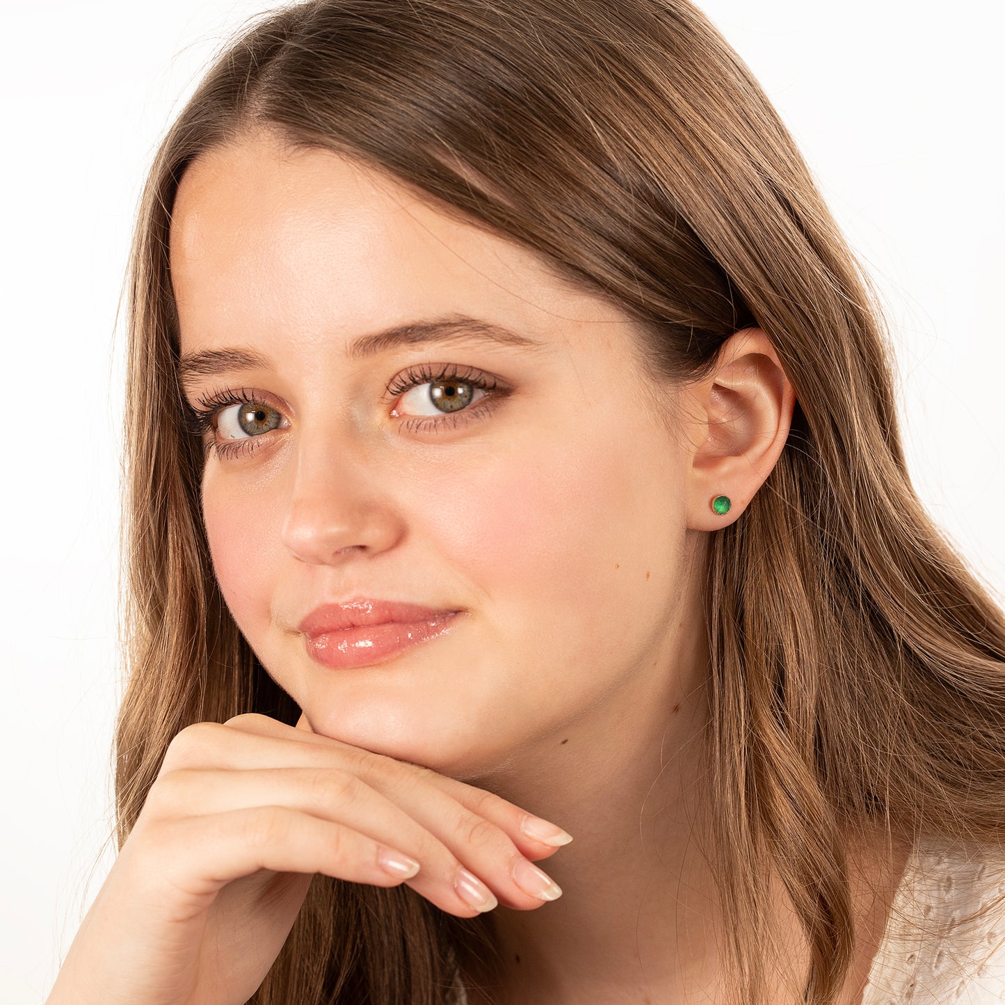 Green Onyx Stud Earrings - Creativity - Silver & Gold