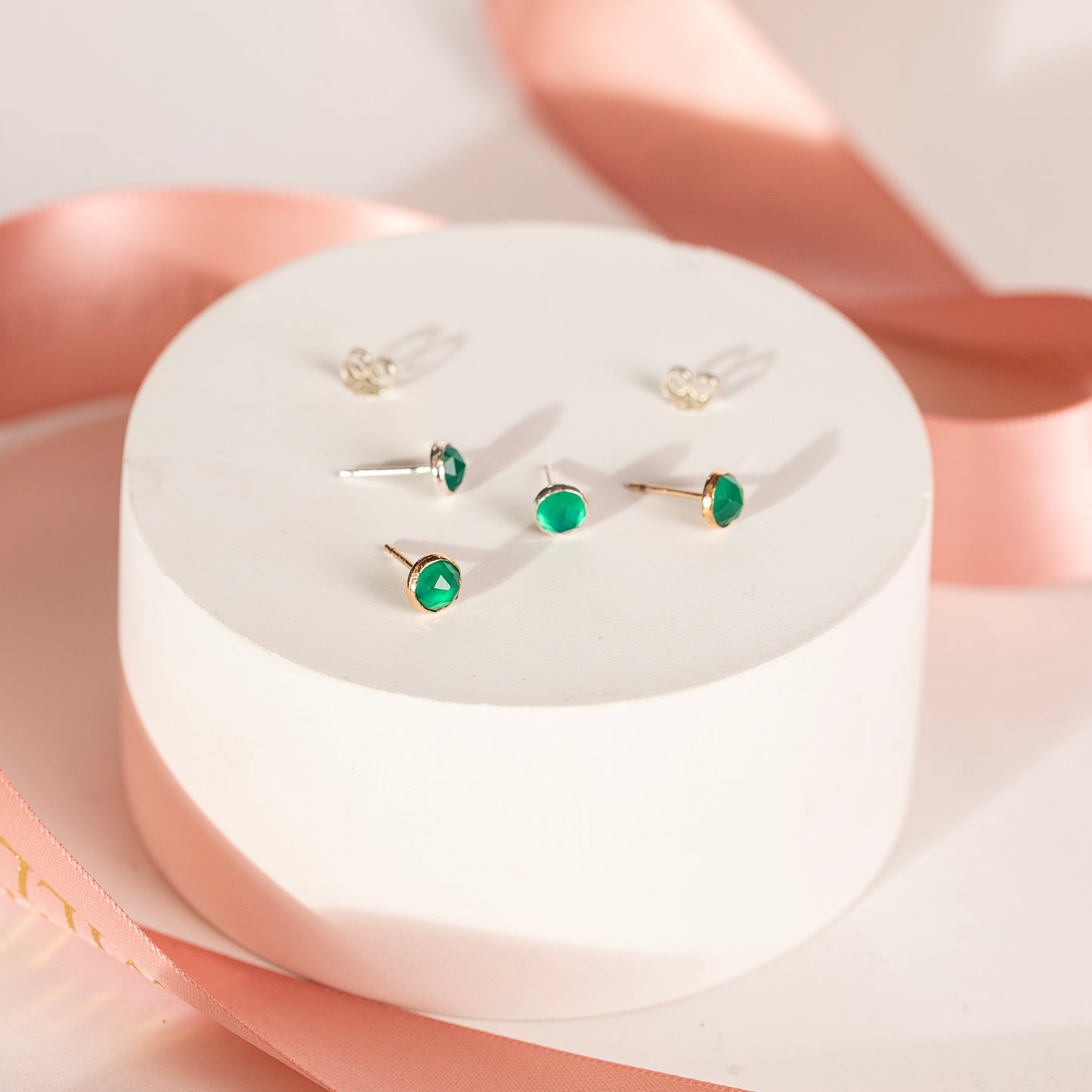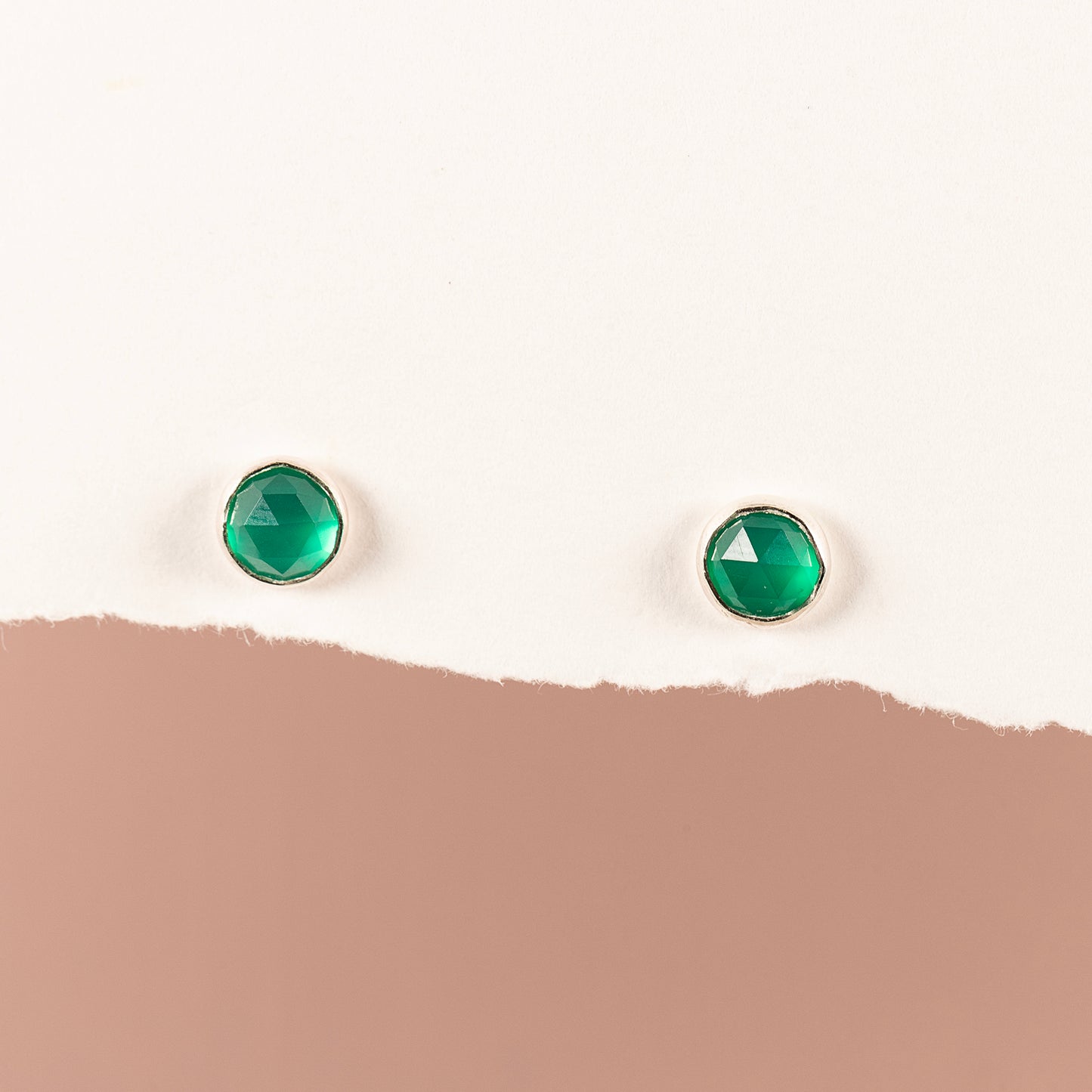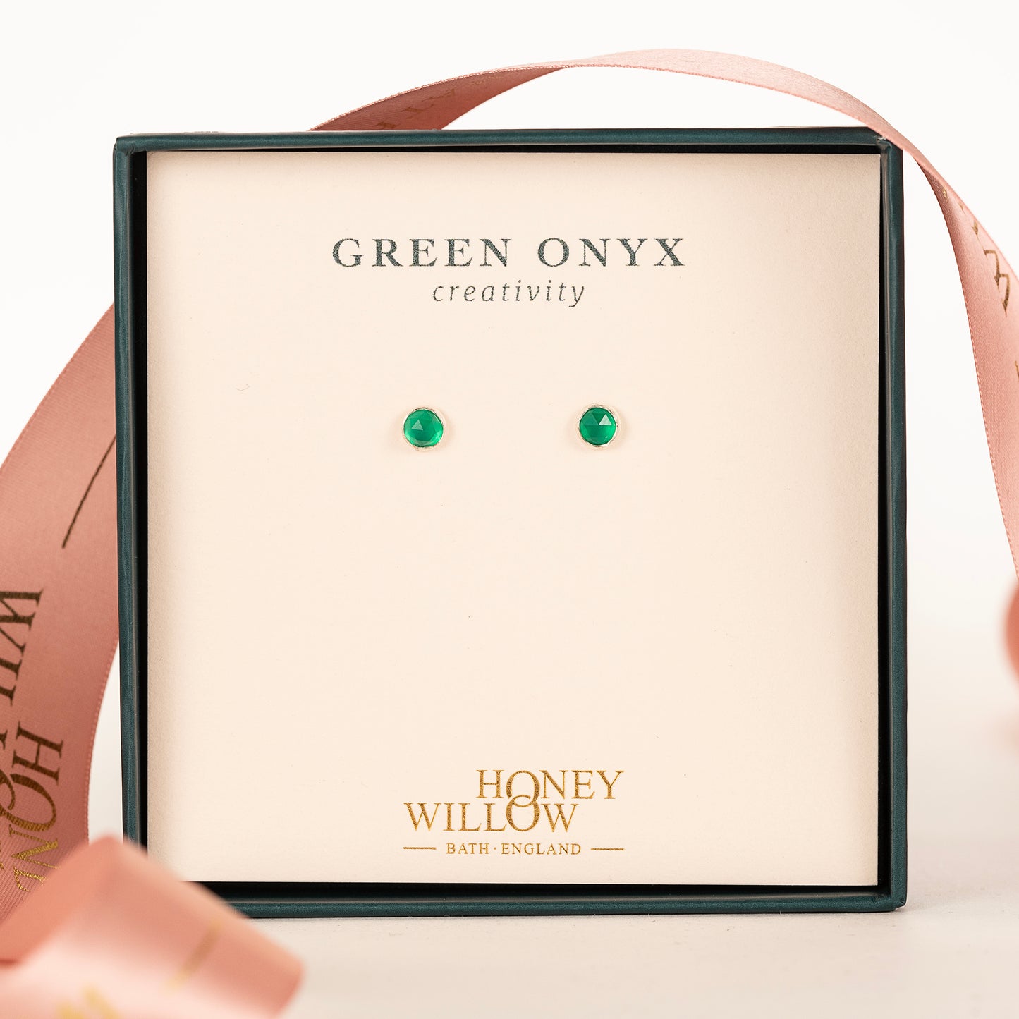These dainty stud earrings are handmade with green onyx stones, which symbolise creativity.