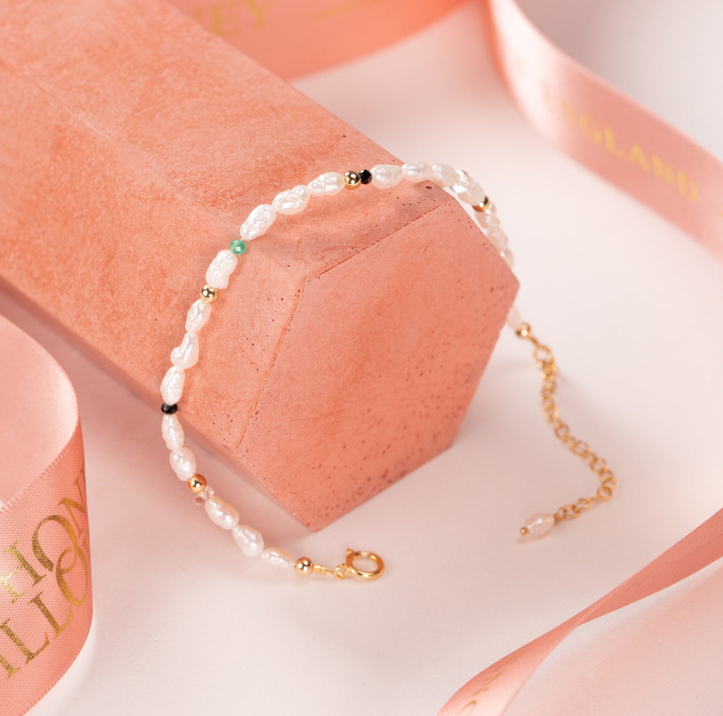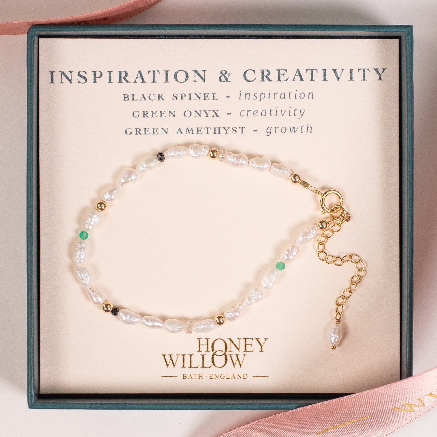 Celebrate and inspire her with a bracelet handmade with seed pearls and gemstones symbolising inspiration, creativity and growth.