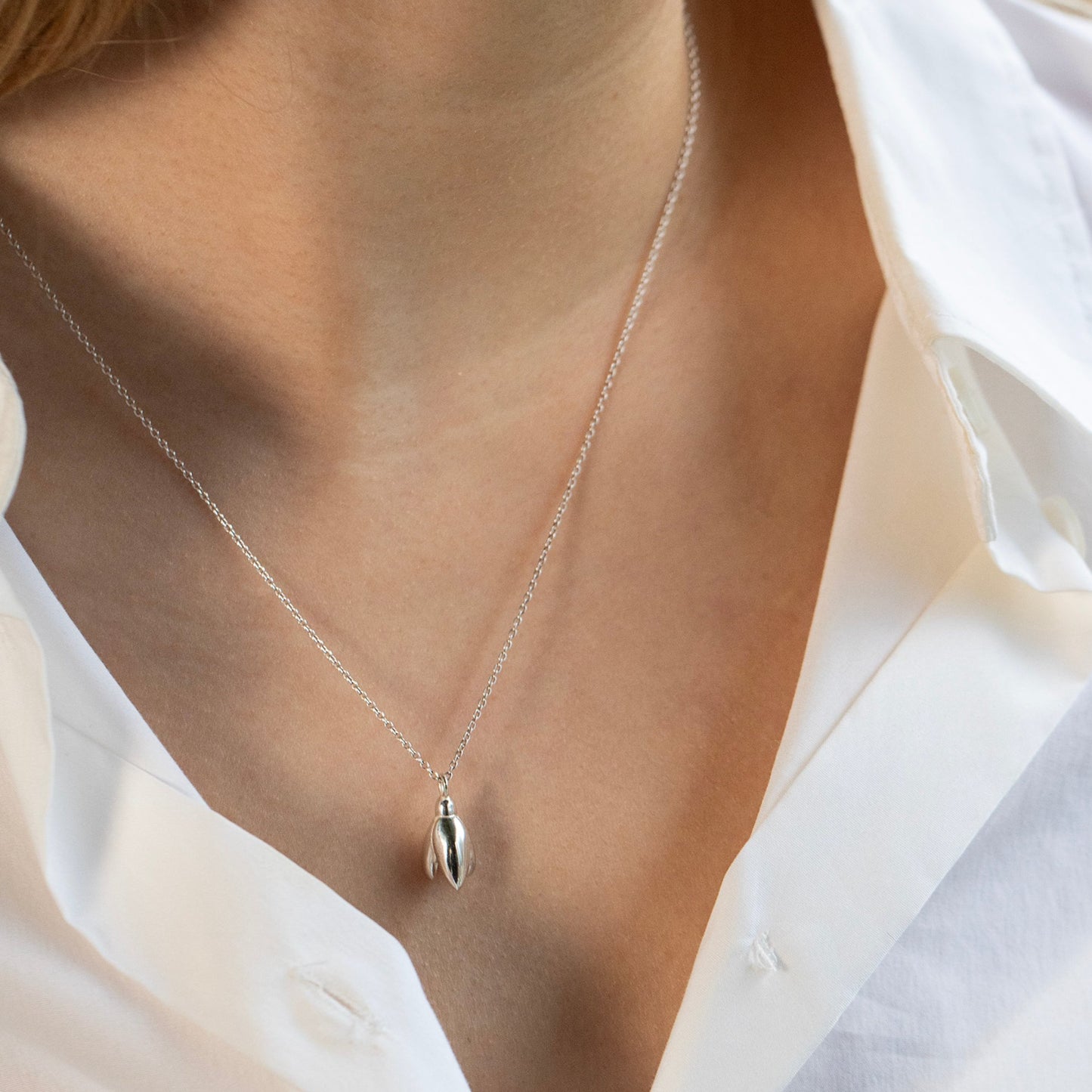 Celebrate her birth month with a dainty snowdrop necklace, made with recycled silver.