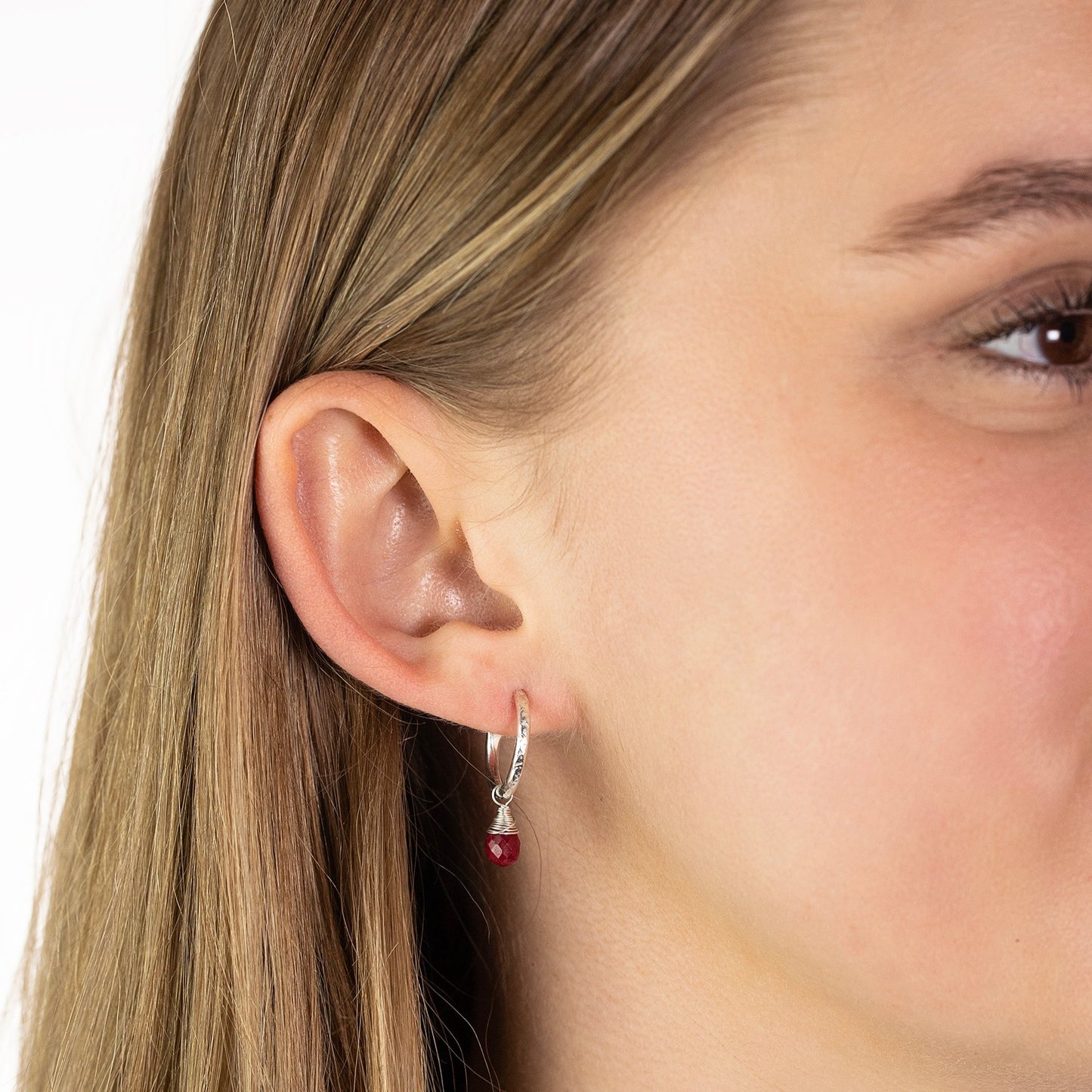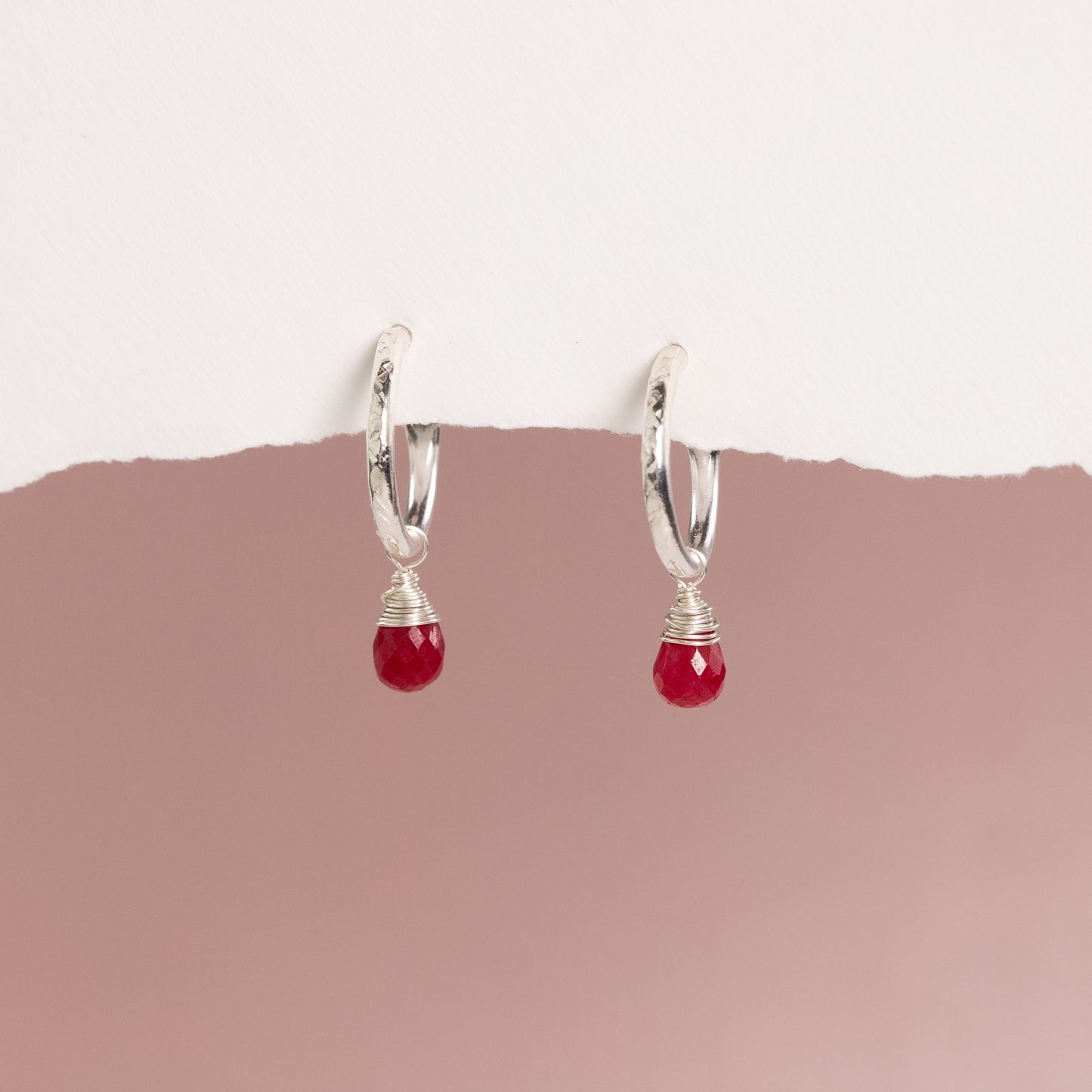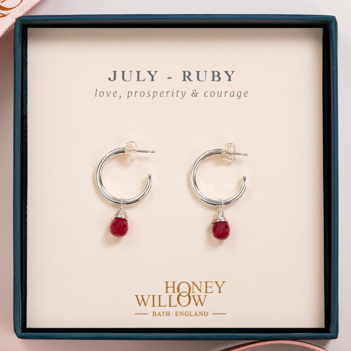 July Birthstone Earrings - Ruby Silver Hoops - 1.5cm