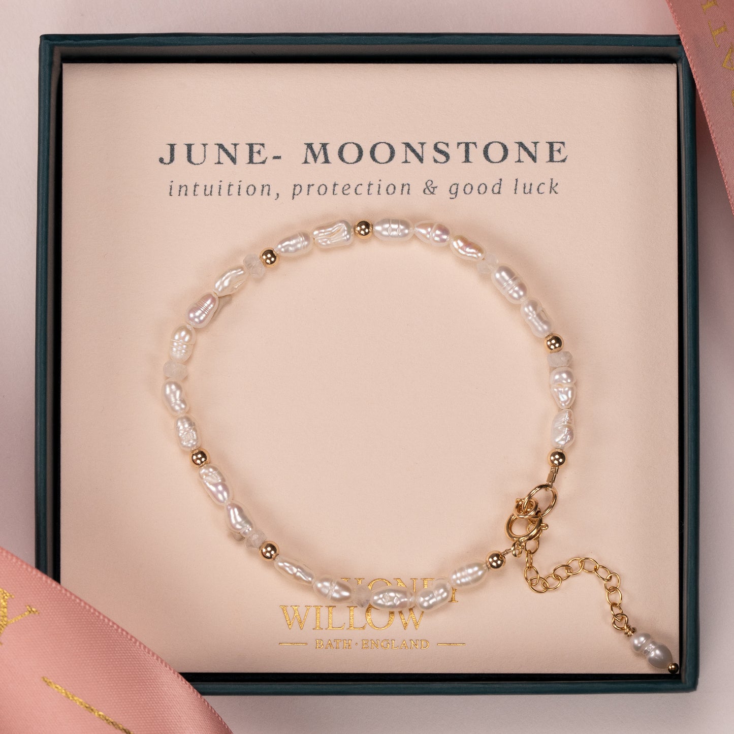 June Birthstone Bracelet - Seed Pearl & Moonstone