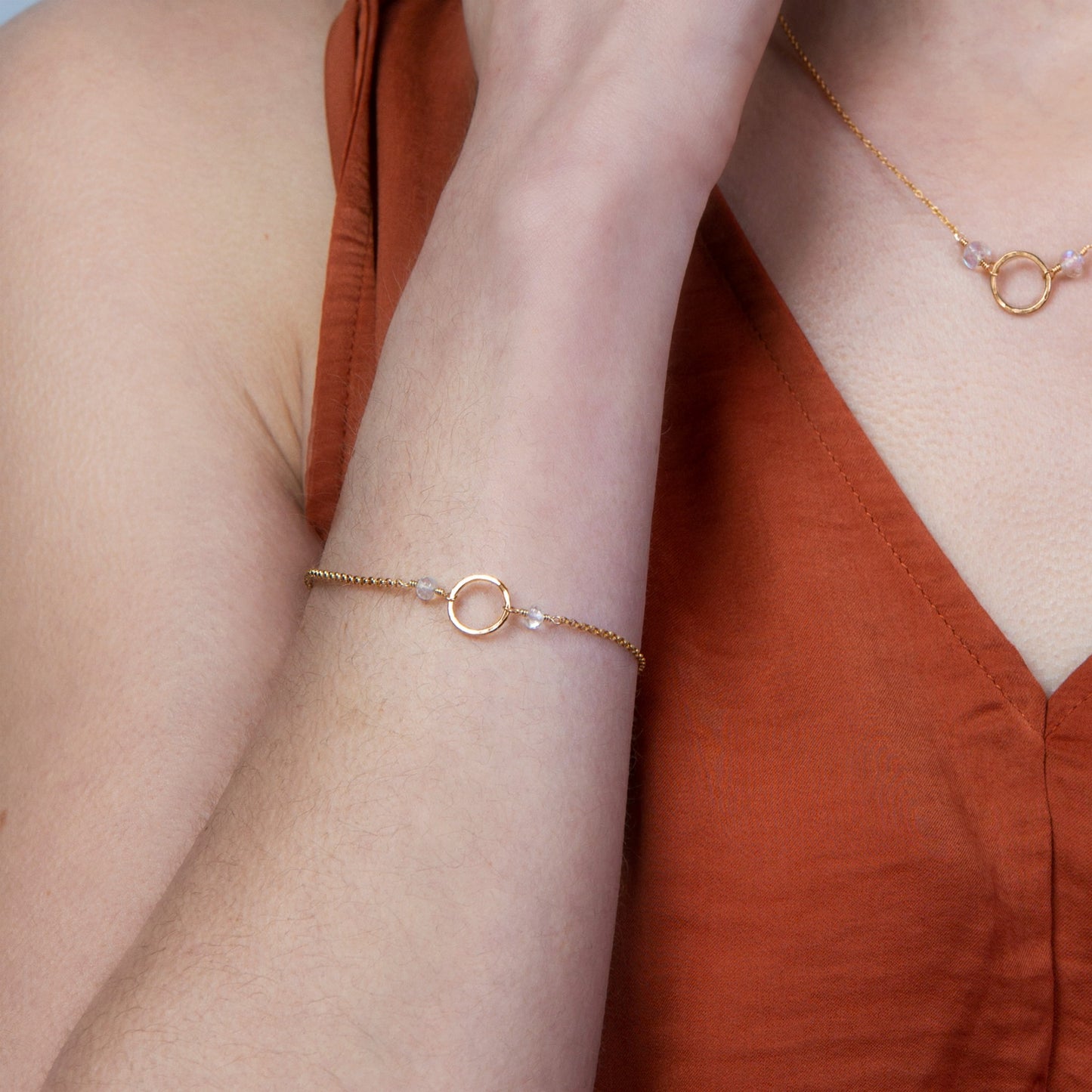 Celebrate her June birthday with a delicate bracelet handmade with her birthstones on either side of a circle.