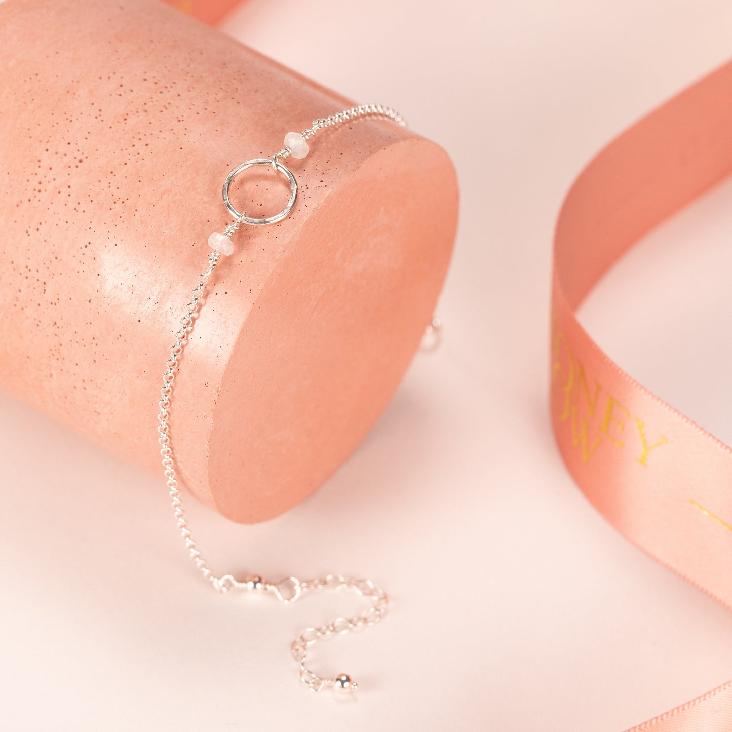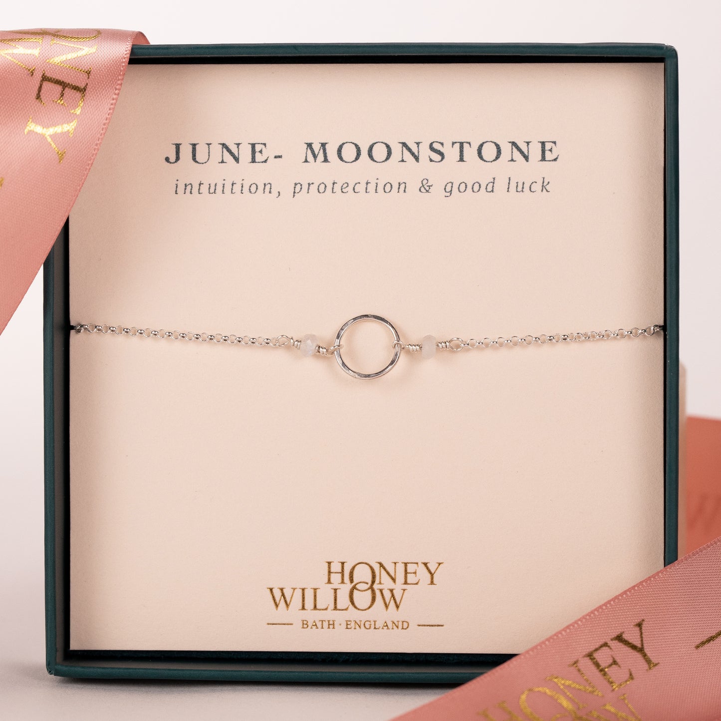 Moonstone is a birthstone for June. Circles symbolises infinite love, strength and unity.