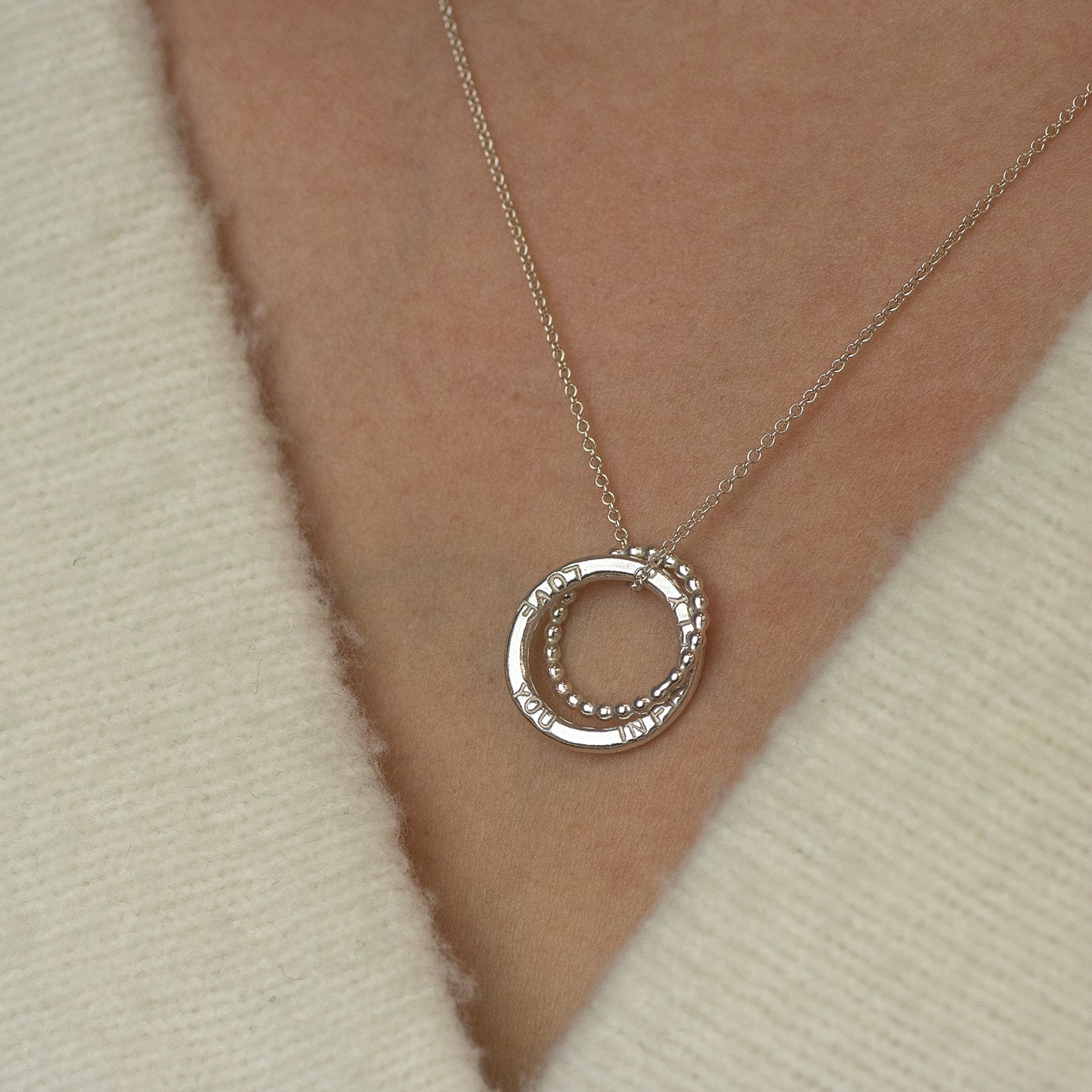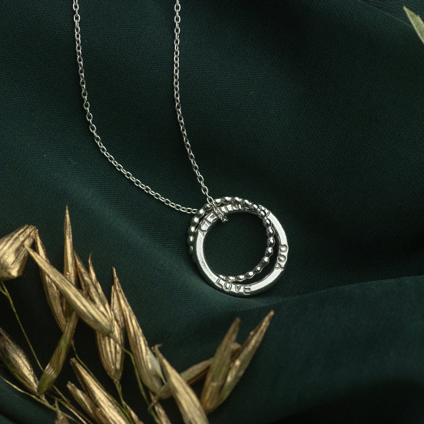 Let her know you love her infinitely, with a sterling silver double link necklace, inscribed with the words 'love you infinitely'.