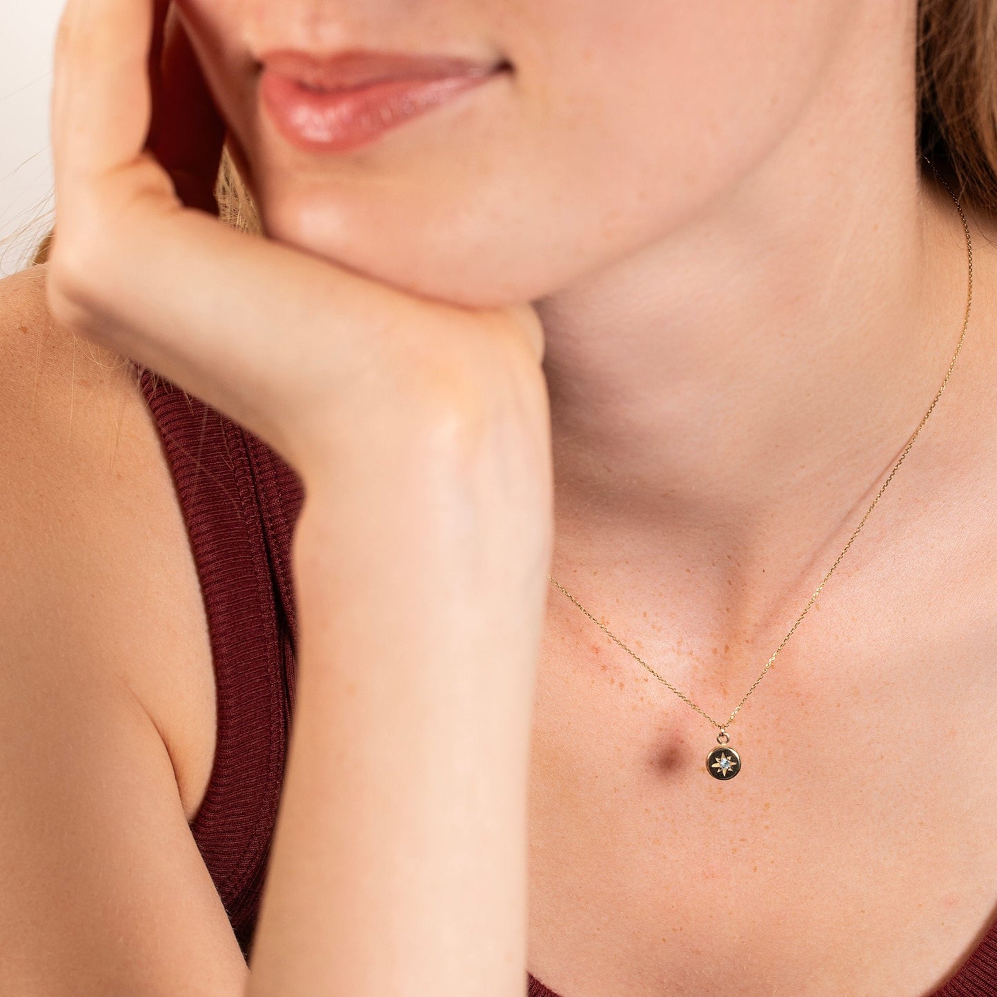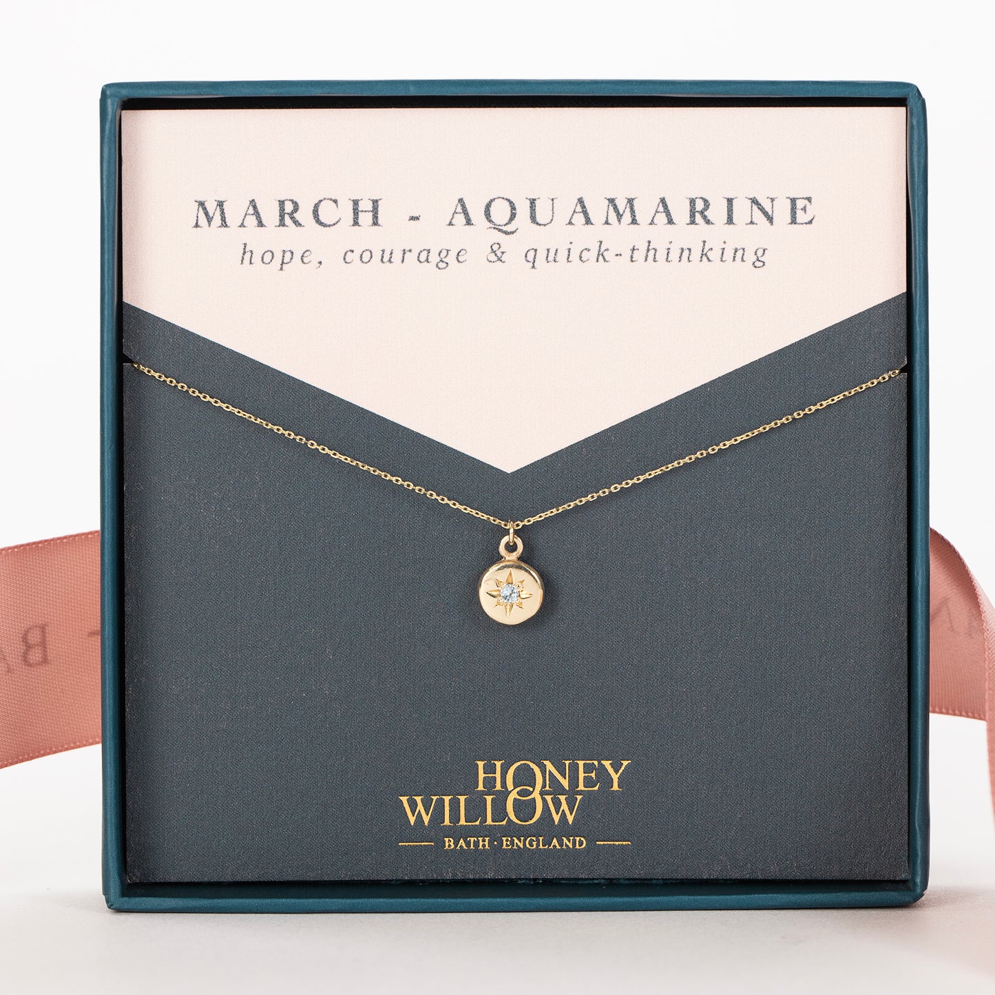Celebrate her March birthday with a dainty 9kt gold necklace, star-set with a tiny aquamarine.