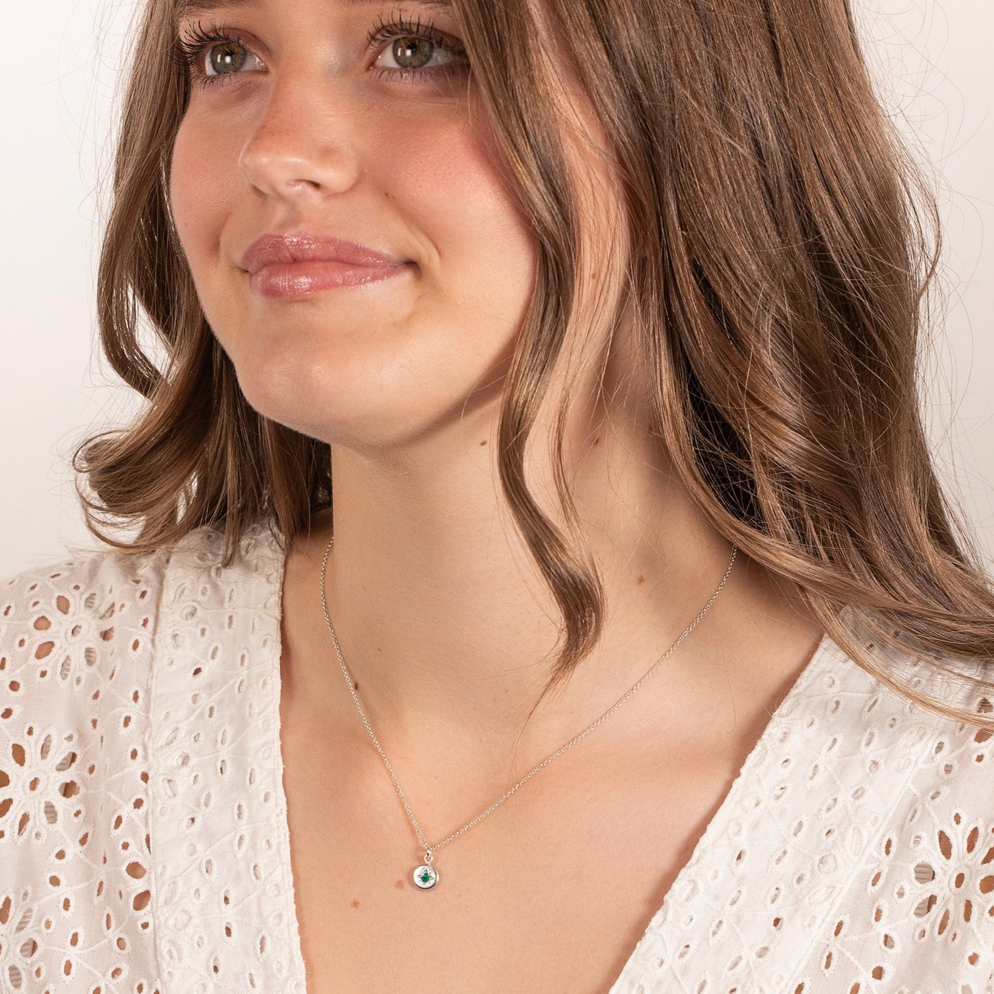 May Birthstone Necklace - Emerald Star Set Pendant - Silver