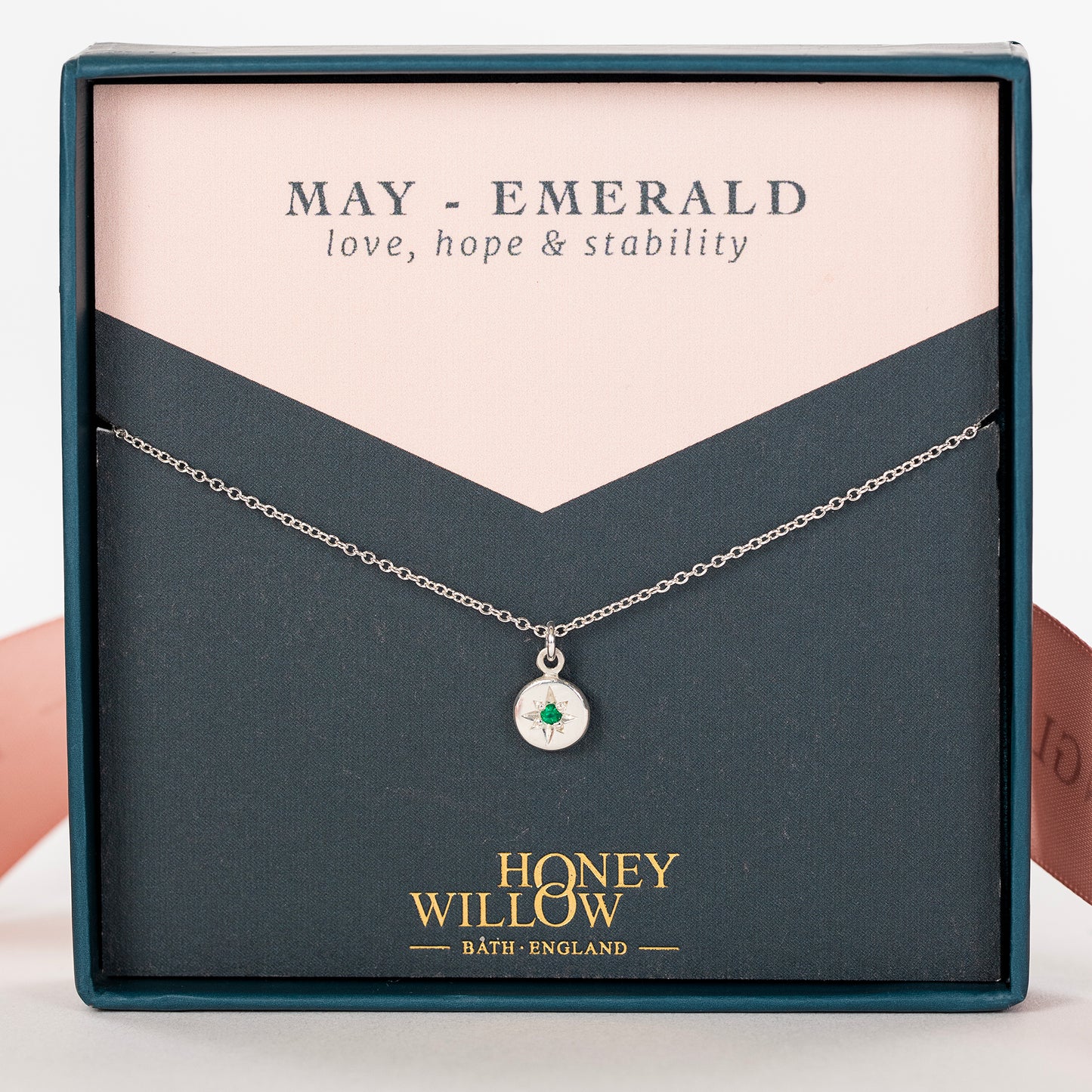 Celebrate her May birthday with a dainty sterling silver pendant, star set with her birthstone.