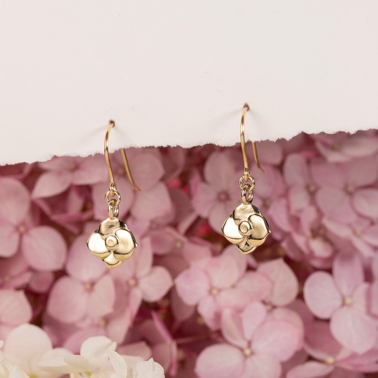 Celebrate her birth month with dainty hydrangea flower earrings, made with recycled 9kt gold.