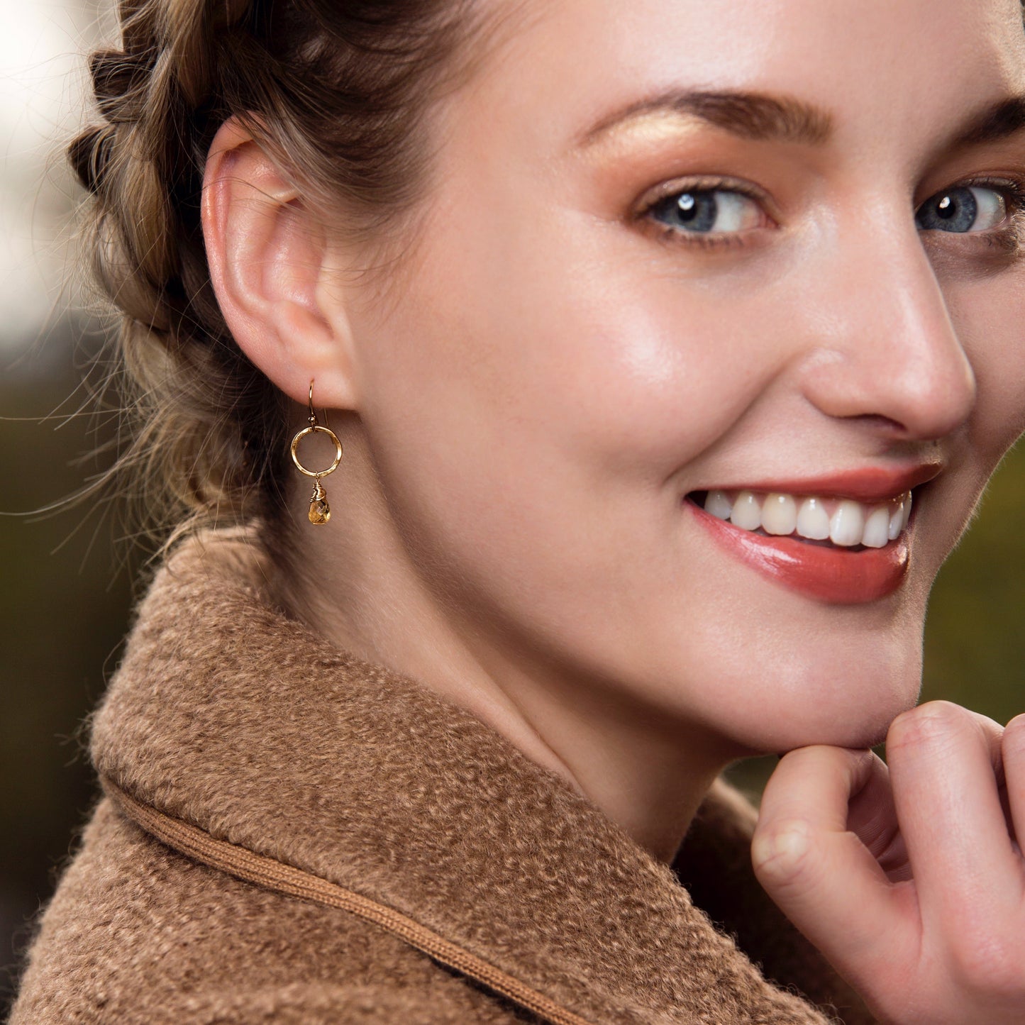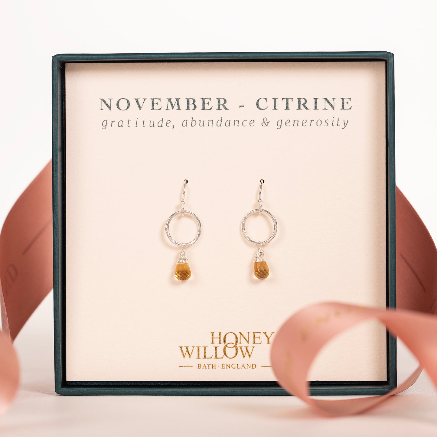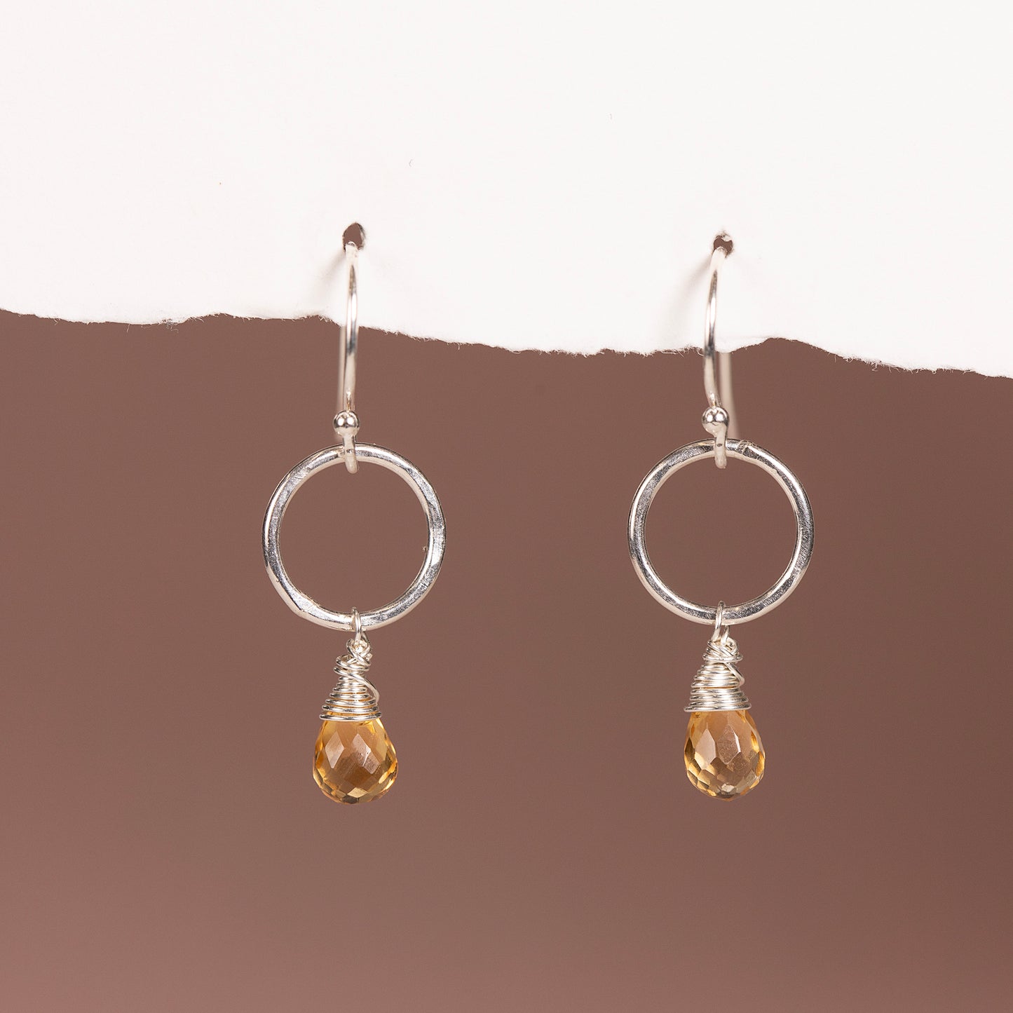 November Birthstone Circle Earrings - Citrine - Silver & Gold