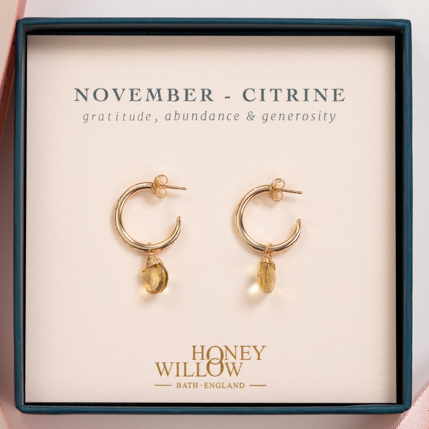 November Birthstone Earrings - Citrine Gold Hoops - 1.5cm