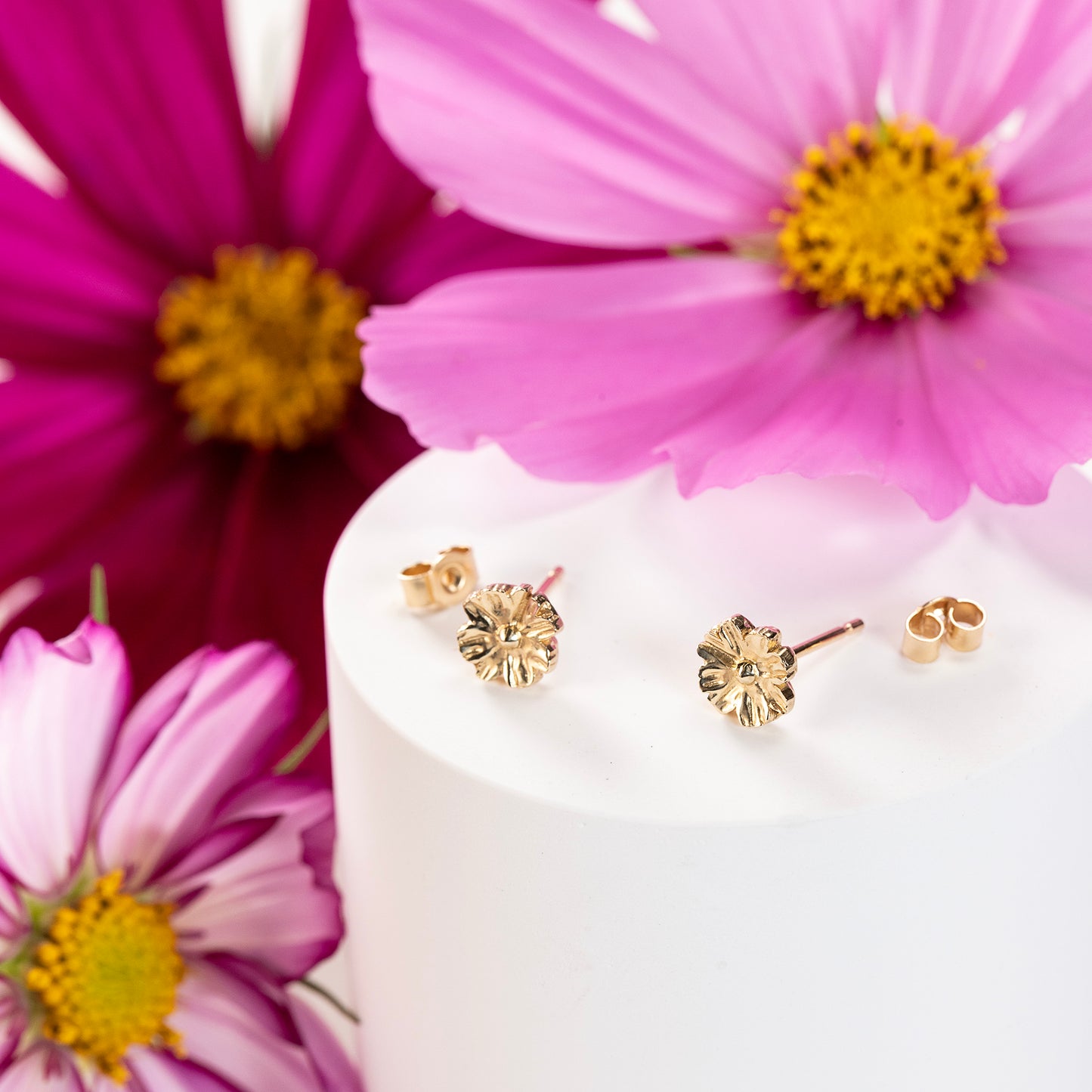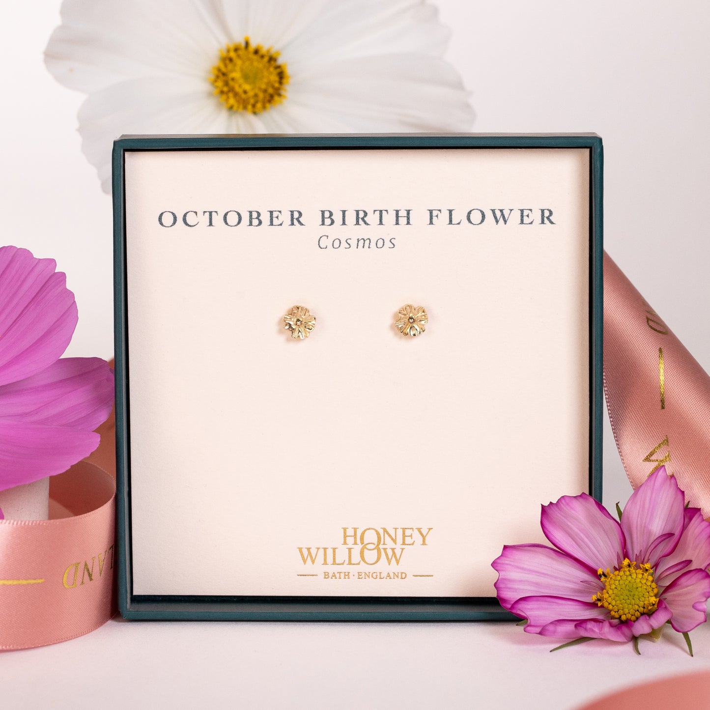October Birth Flower Stud Earrings - Cosmos - 9kt Gold