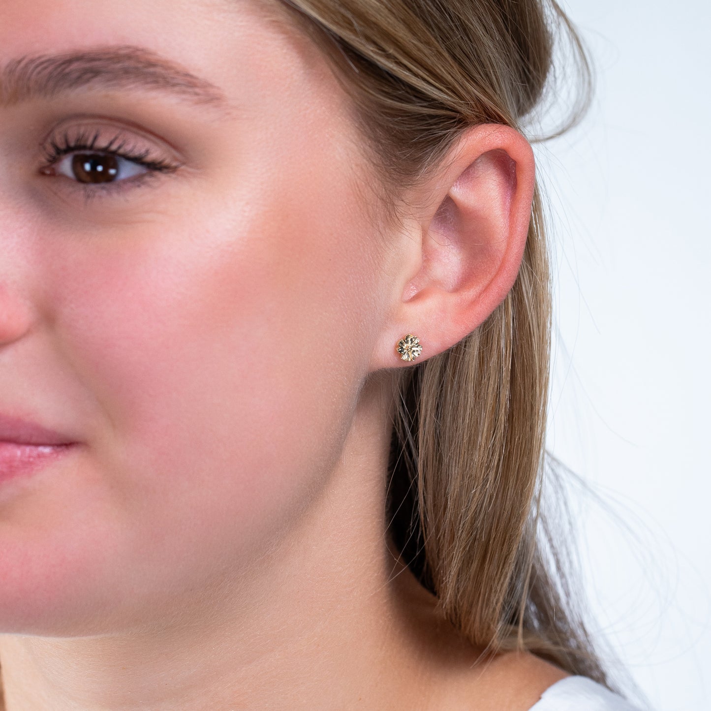 The cosmos studs are 5mm in diameter. They are made with recycled 9kt gold and hallmarked.