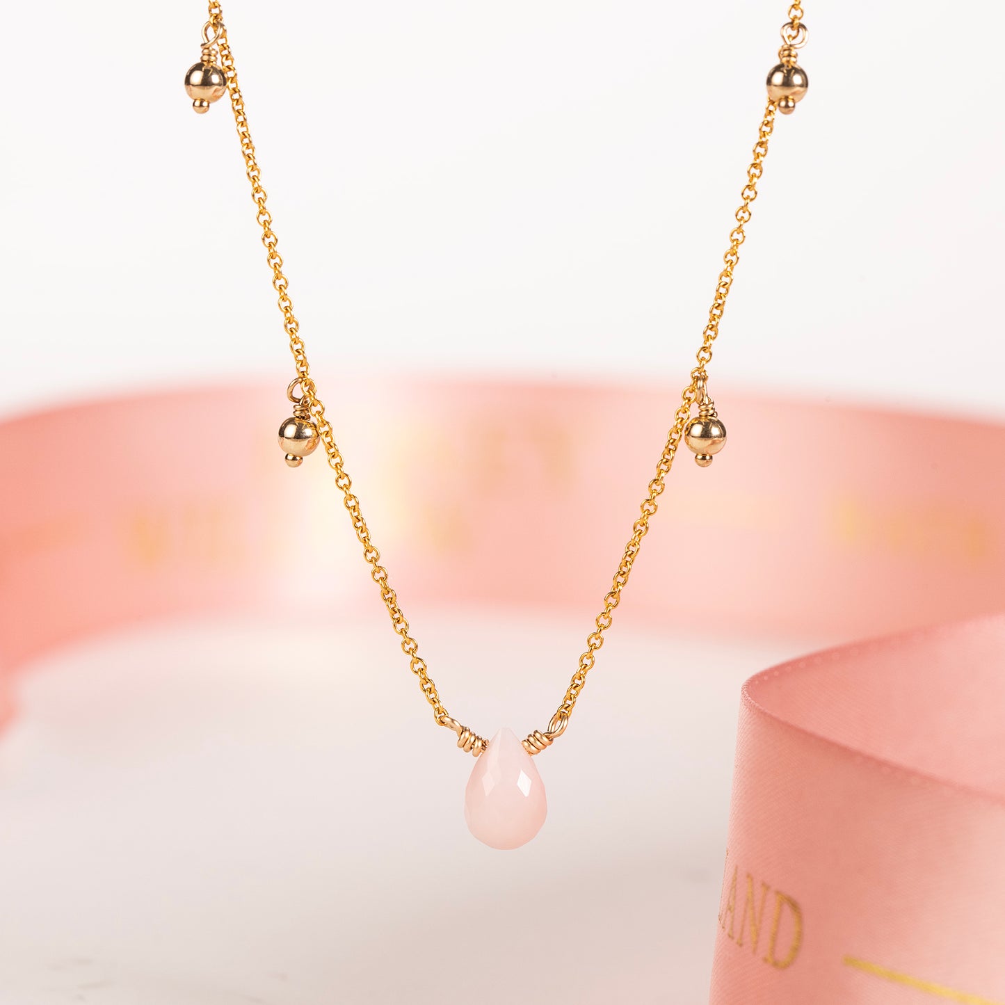 October Birthstone Briolette Choker Necklace - Pink Opal - Silver & Gold