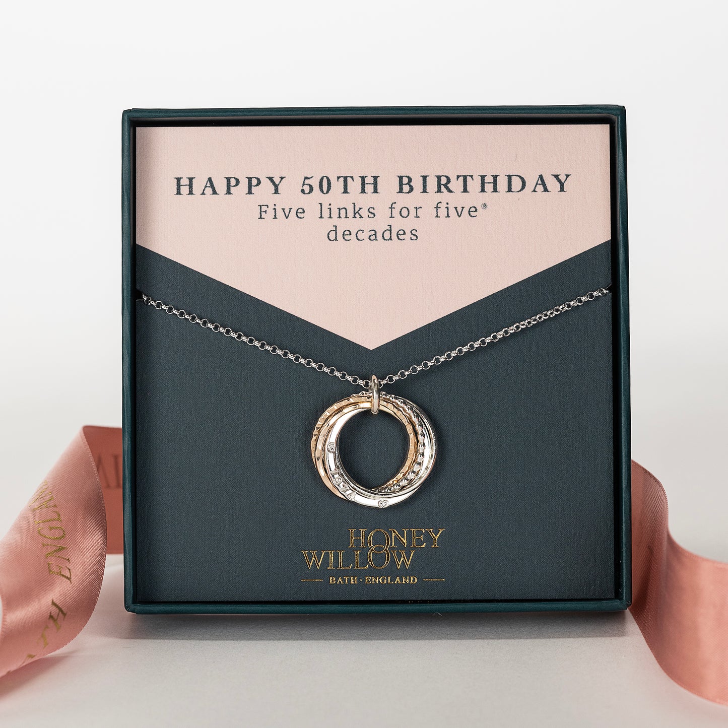 Celebrate her 50th birthday with a personalised five links for five® decades necklace.