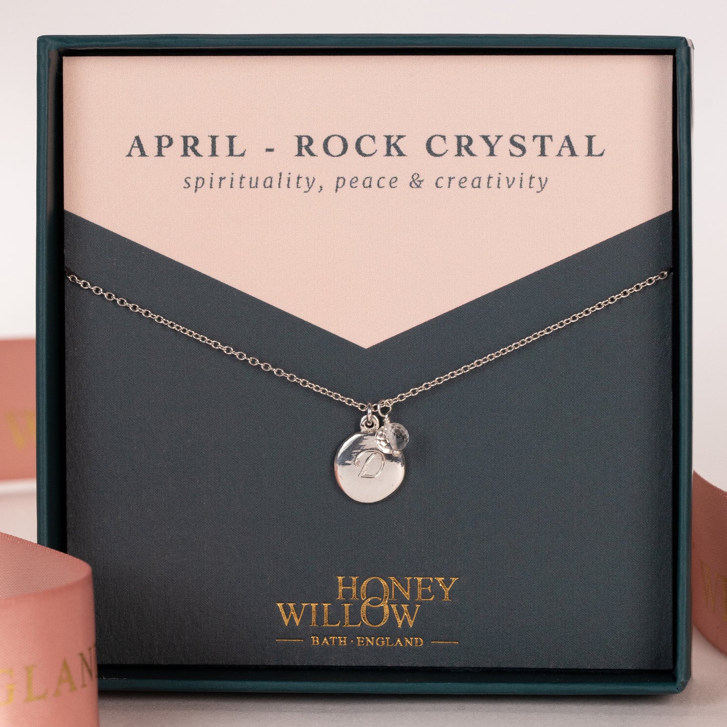 Personalised April Birthstone Necklace - Rock Crystal - Silver
