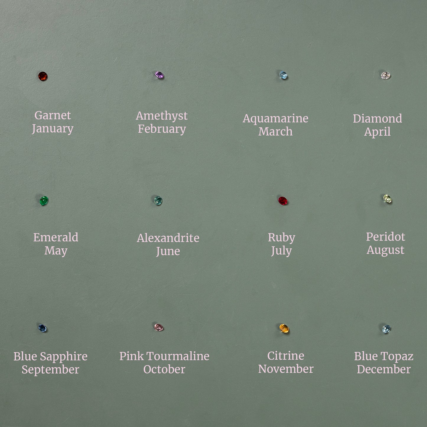 We set the birthstone either into the first O of her name, or beside the word if it does not contain an O.