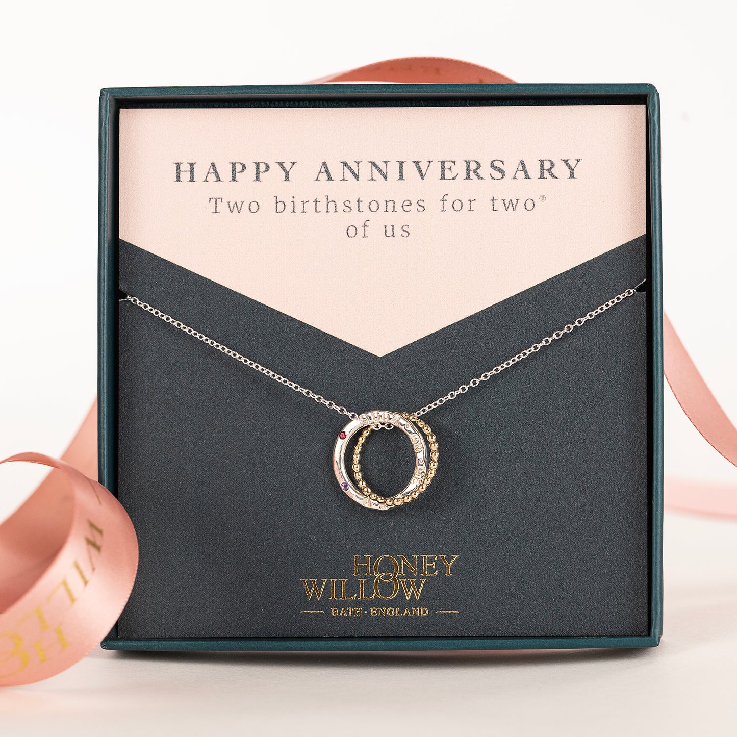Anniversary Gift for Wife - Personalised Double Birthstone Necklace - 9kt Gold & Silver