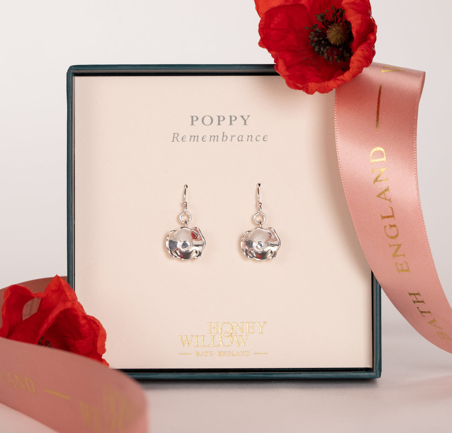 Poppy Flower Earrings - Remembrance - Silver