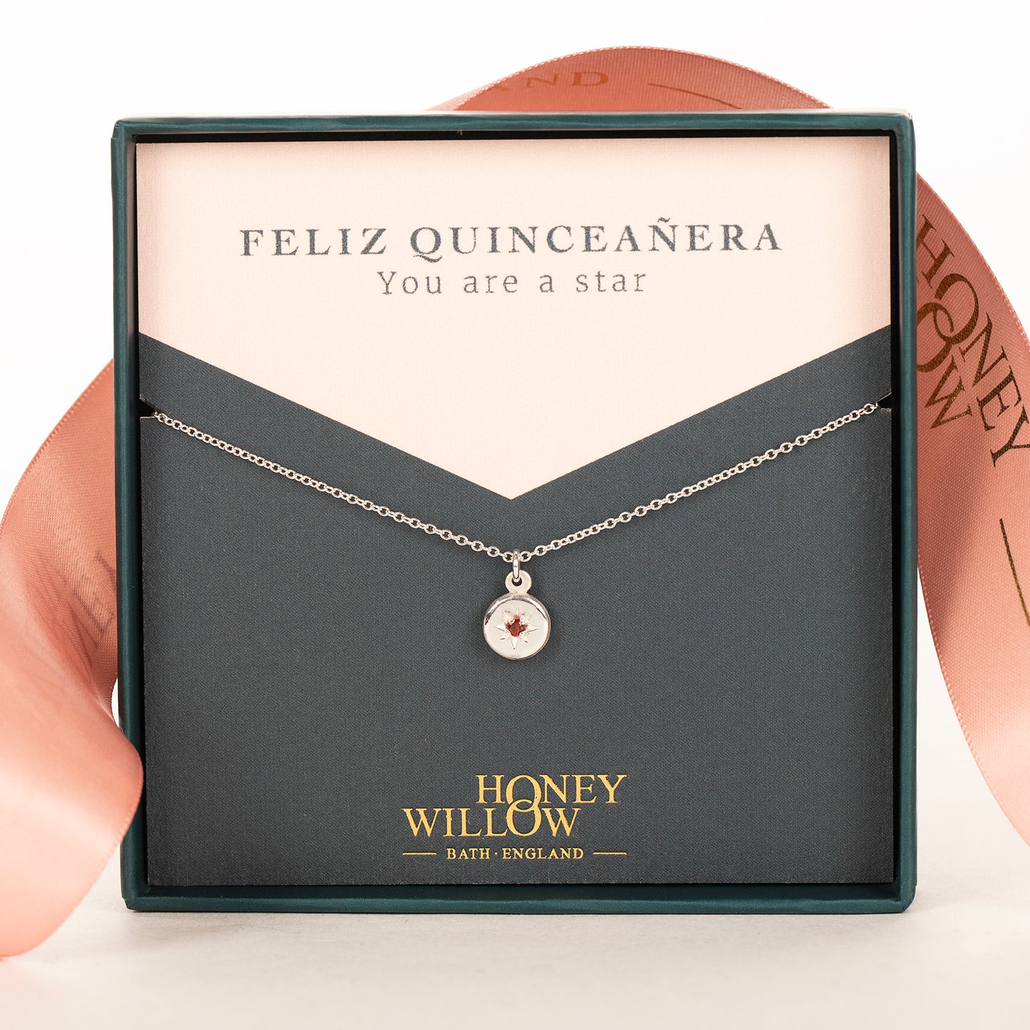 Celebrate her Quinceañera with a dainty sterling silver pendant, star set with her birthstone.